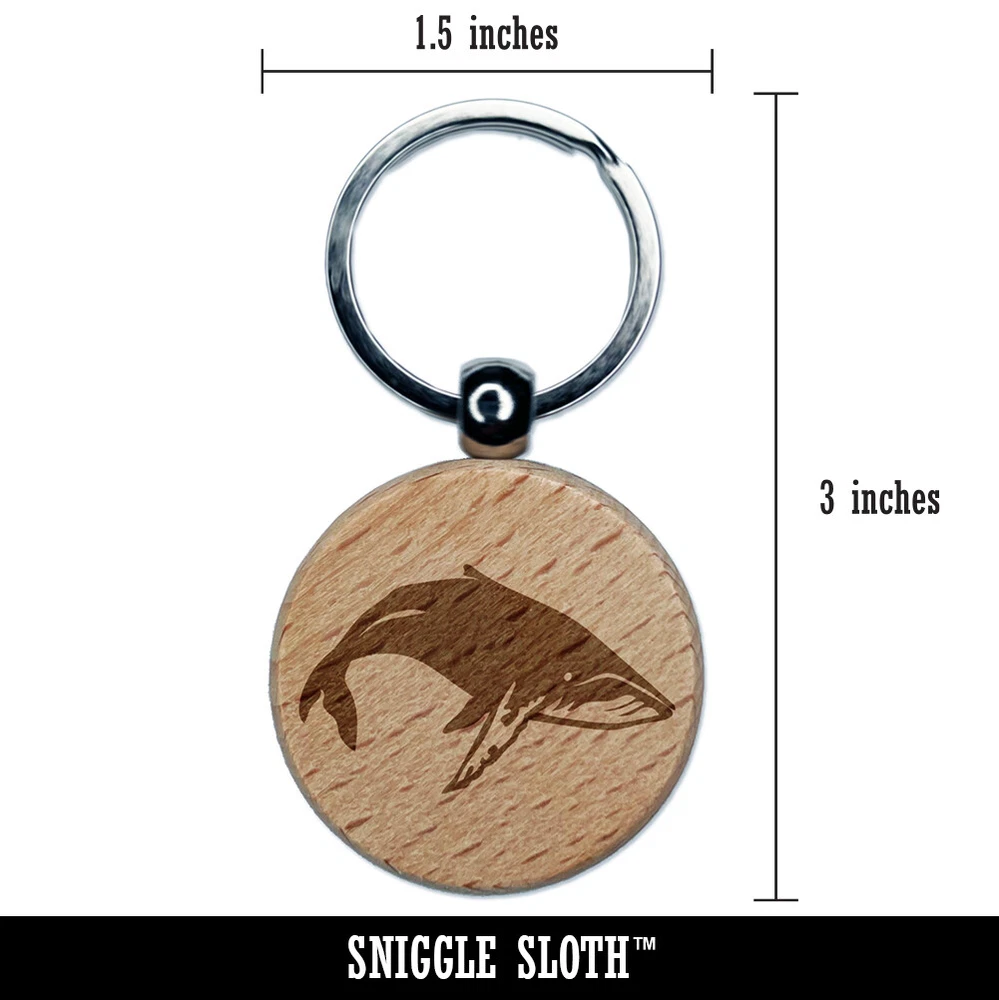 Happy Humpback Whale Engraved Wood Round Keychain Tag Charm