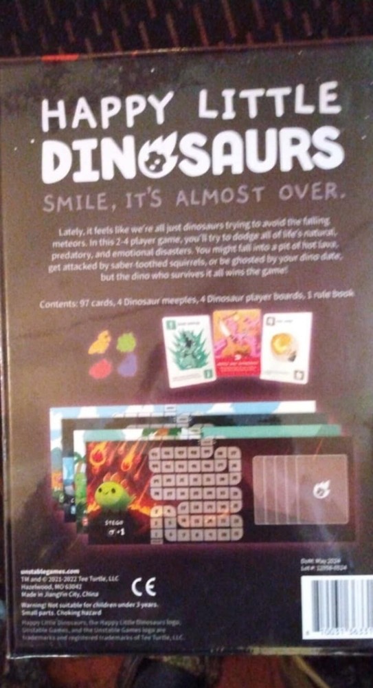 Year:2021Type:CardsRecommended Age Range:8+Theme:StrategyUPC:0810031363315Gender:Boys & GirlsGame Title:Happy Little DinosaursCharacter Family:Happy Little DinosaursMin. Number of Players:2 playersAge Level:12-16 Years, 8-11 Years, 17 Years & UpGame Type:Board Gamegtin13:0810031363315Brand:GAME