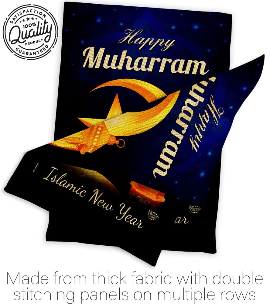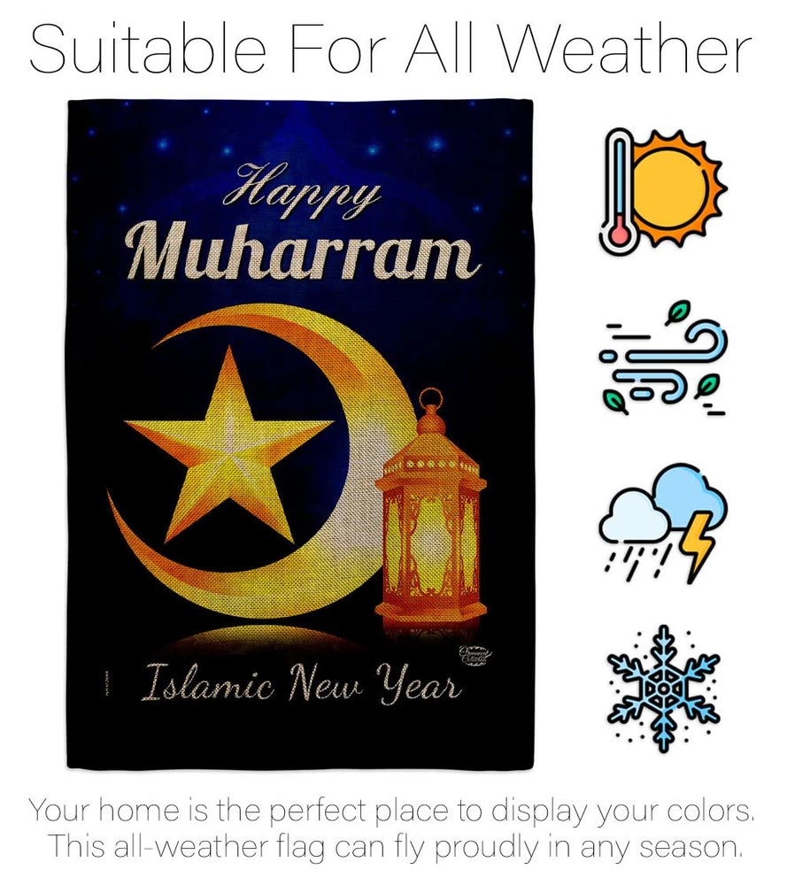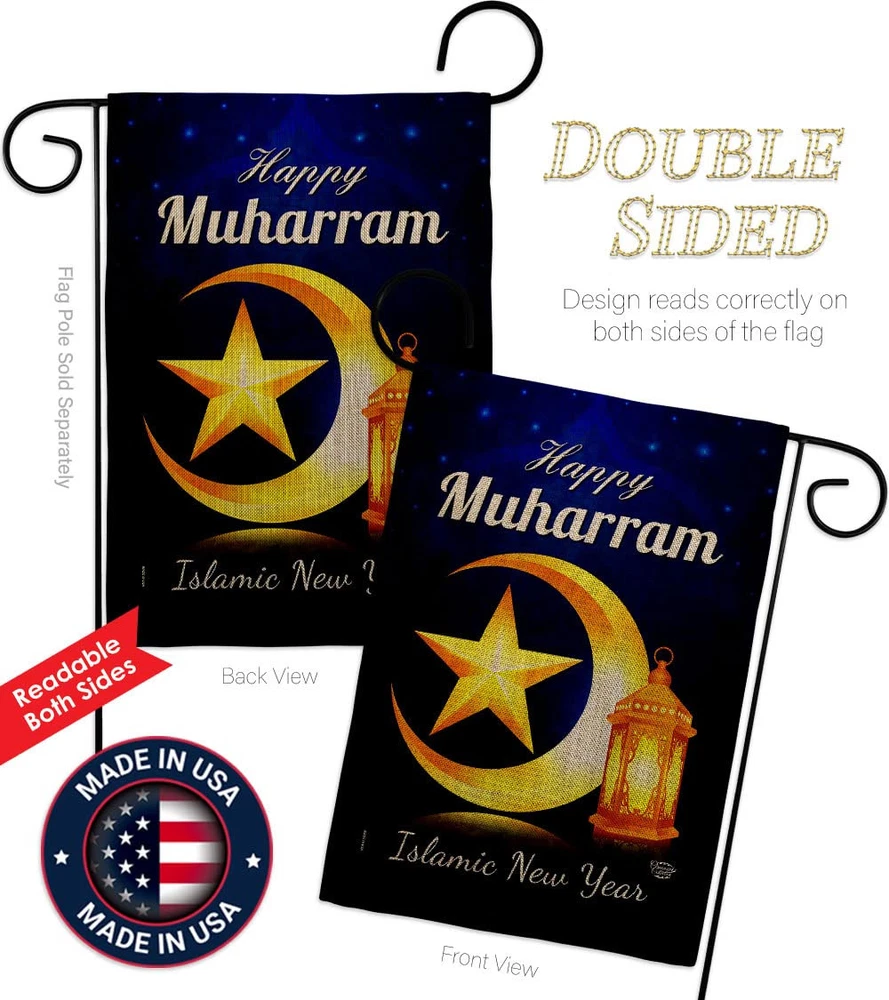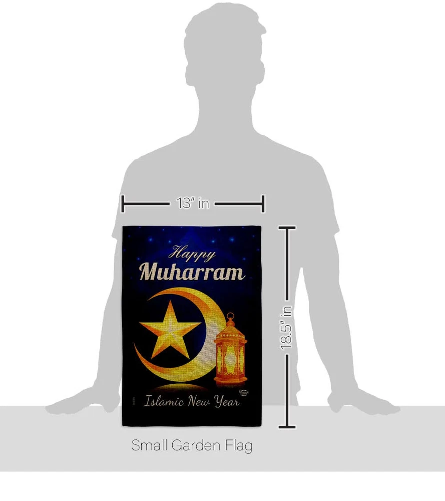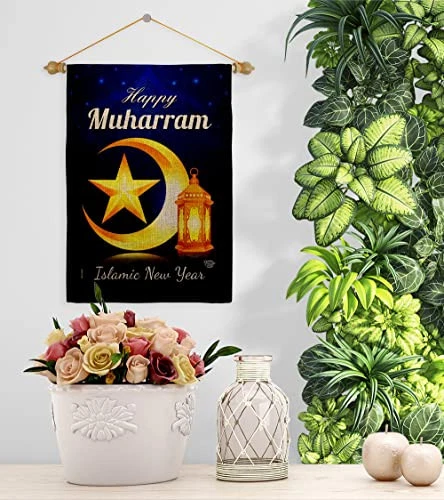 Happy Muharram Burlap Garden Flag Set Wood Dowel Celebration Islamic New Year...
