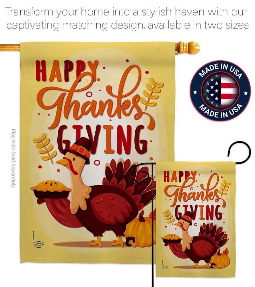 Thanksgiving Beautiful Large House Flags Pack - 2 Sets have variety of House Flags Pack for all occasions. Uniquely design for hanging indoor or outdoor use. We are committed to offering you exceptional values. Our customers enjoy displaying our House Flags Pack for longer periods. Specification: Theme: Thanksgiving Size: House Flags Pack 28" x 40" Print: Double-Sided Readable: Readable Both Sides Material: Weather Resistant 3 Layers Blockout Stitching: Double Stitched Display: Vertical Hang Type: Sleeve Artist: © Ava Storey Special Features: Origin: Made In USA Package Include: 2 pc x House Flag 28" x 40" Package Decorative Flags For more than a decade, we’ve been dedicated to manufacturing flags with no comparison in quality and beautiful designs. Our flags are made with our Guard material that is soft to the touch and designs can be read correctly on the flag. A feature that our customers will love. We are committed to using eco-friendly inks that won’t leave a foot print in our environment. MPN: OC-TG-HP-192228-IP-BOAE-D-US20-OC 92228 92228 PROUDLY Made In USA - Package And Product Designed In California PURCHASE WITH CONFIDENCE - From 's US Authorized Resellers MADE OF DURABLE - 100% Thick Polyester Fabric construction helps resist the wear and tear from frequent use TEXT READABLE BOTH SIDES - House Flags Pack Double-Sided Print DURABLE FLAG - Double stitching panels on multiple rows and high quality Sleeve to provide lasting strength VIBRANT COLORS - With UV-Resistant Maintains Its Colors All Season Long FEATURES - Sleeve Hanger fits standard Banner/Flagpole, Bracket, Arbors or stand, SOLD Separately
