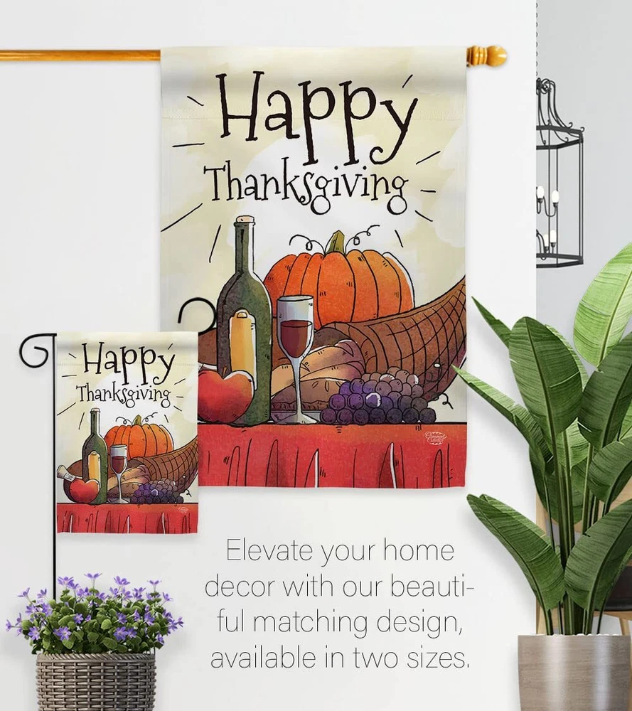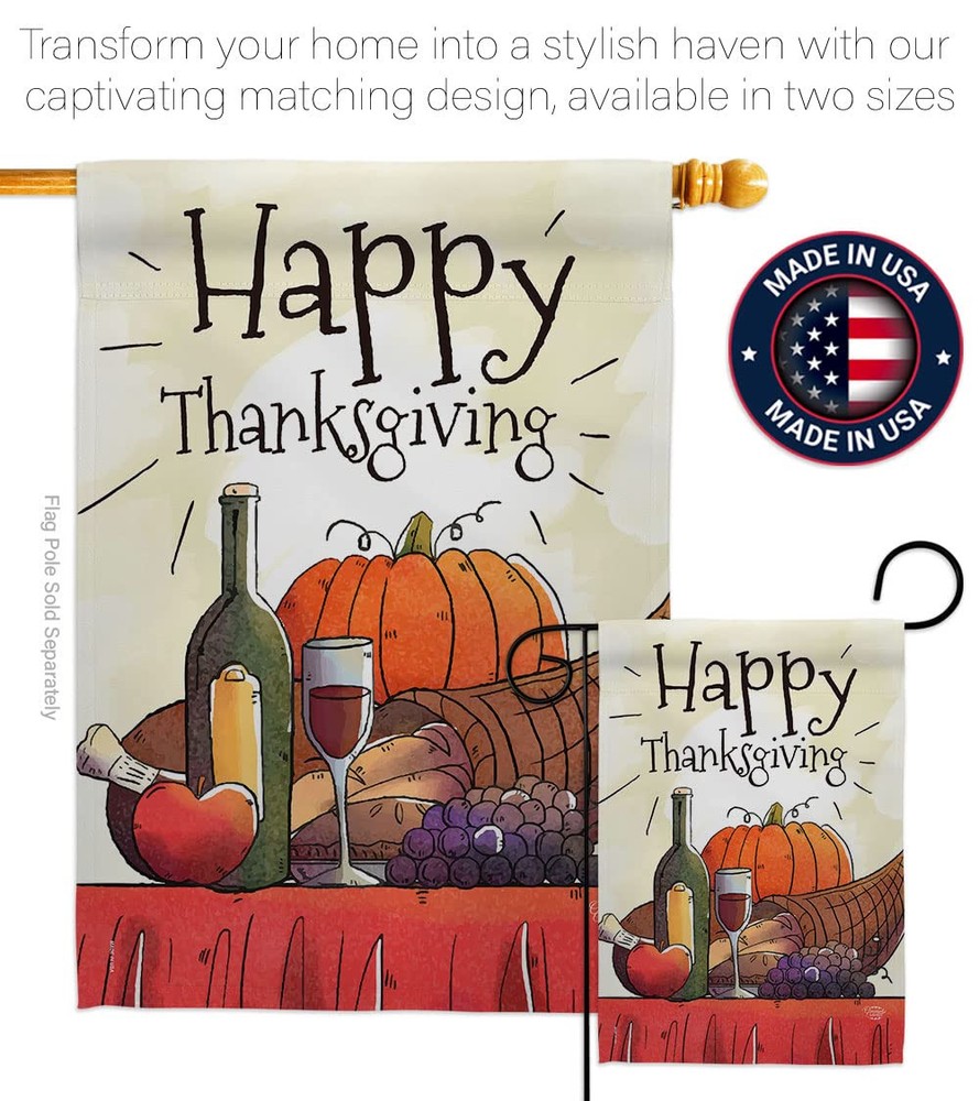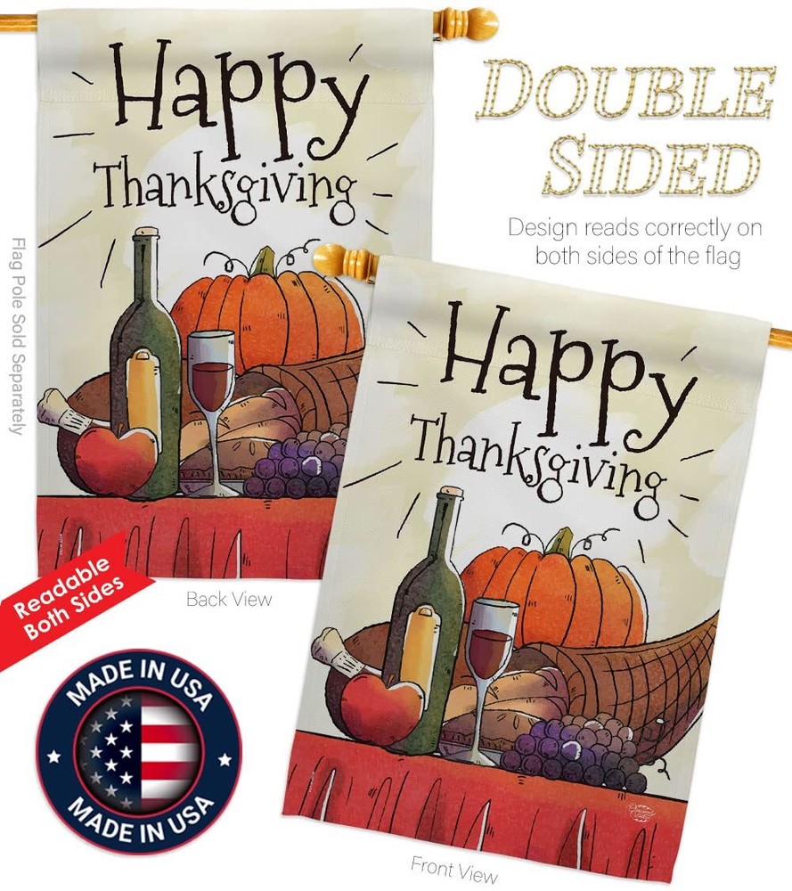 Happy Thanksgiving Feast House Flag - Pack Fall Turkey Give Thanks Gobble Pum...