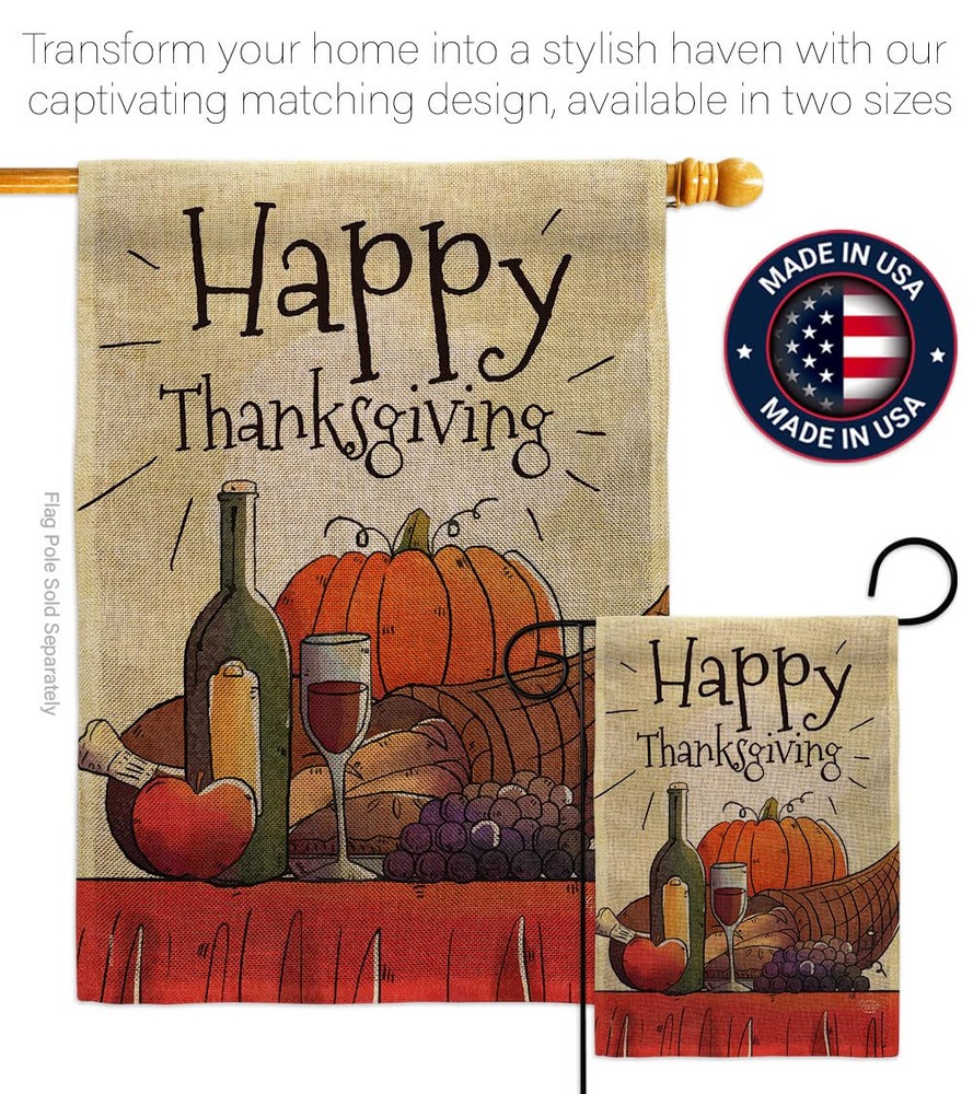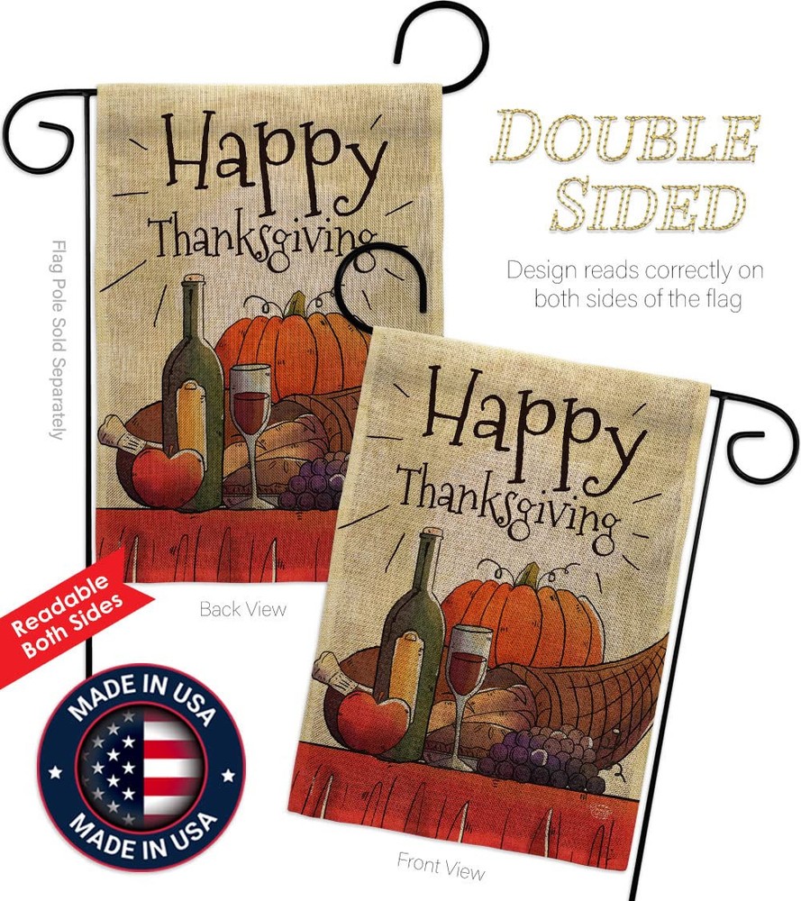 PROUDLY Made In USA - Package And Product Designed In California PURCHASE WITH CONFIDENCE - From 's US Authorized Resellers MADE OF DURABLE - 100% Thick Double Burlap Fabric construction helps resist the wear and tear from frequent use TEXT READABLE BOTH SIDES - Garden Flag Set Double-Sided Print DURABLE FLAG - Double stitching panels on multiple rows and high quality Sleeve to provide lasting strength VIBRANT COLORS - With UV-Resistant Maintains Its Colors All Season Long FEATURES - Free Breaks Down Metal Garden Flag Pole Included!