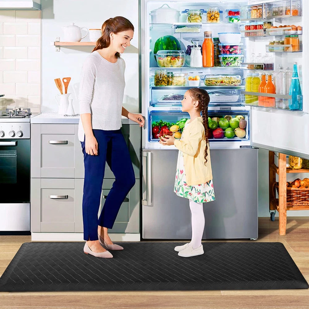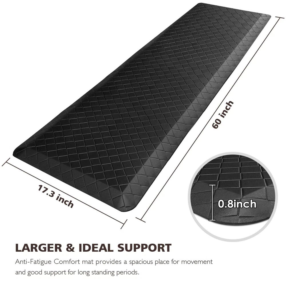 HappyTrends Kitchen Floor Mat - 4/5 Inch Thick Anti-Fatigue Kitchen Rug,Waterproof Non-Slip Kitchen Mats and Rugs Heavy Duty Ergonomic Comfort Rug for Kitchen,Office,Sink EXTRA SOFT:Extra thick kitchen mats are ergonomically designed for your comfort and are perfect choice for for people who spends a lot of time on their feet at work or at home.Cushioned support help improve circulation and posture while maintaining the firmness needed to keep a steady footing WATER RESISTANT:Our anti-fatigue mats are made of premium quality PVC material making it convenient to clean up and will not collect dirt;The material repels water,oils or stains and if anything spills,it makes an effortless clean up;Grid pattern surface never wrinkles and gives a premium texture without collecting debris NO TRIPPING:The non skid washable kitchen mats and rugs are designed with advanced beveled edge and non-slip backing helpful to protect you from slippage and tripping.Beveled edge with anti-curl prevents tripping and you can rely on to keep your family safe VERSATILITY:The memory foam kitchen floor mats provide extra large areas for standing in laundry room, kitchen, office, farmhouse,in front of sink or any other high-traffic indoor or outdoor space NON-SLIP:Nonslip PVC Bottom is manufactured so that they do not move around like other mats while a slight texture on the top makes them slip resistant; Rug must be placed on dry surface during use Have you ever suffered back aches caused by your uncomfortable posture while washing dishes, cooking, doing laundry or working? The HappyTrends kitchen rugs and mats can help provide a comfortable space for standing and working in the kitchen or in any work space. The anti-fatigue kitchen floor mat provides support to help relieve pressure for your feet, knees, joints, and lower back. Cushioned Support Extra thick anti-fatigue kitchen mat is ergonomically engineered and its cushioned support helps improve circulation and posture It is a must-have if you are on your feet for extended periods (such as chef, hair sylist, etc.). Anti-Slip Backing The foam mat for floor has a non-slip bottom to ensure that the mat will stay in place for added safety and stability. The anti-fatigue foam mat may be used on various floor surfaces. Waterproof and Easy to Clean The kitchen runner rug is easily cleaned; simply wipe dirt off with a damp cloth or use a hand-held vacuum as needed. The waterproof surface ensures long-term durability. Rip-Stop Premium PVC Material This comfort standing mat is made of heavy duty PVC material. The PVC is very durable and scratch resistant. The mat is built to last, even with continuous use. Shipping We offer FREE shipping on all orders! We use a selection of shipping services such as UPS, FedEx, USPS etc. We only ship to the lower 48 states, no APO/FPO addresses or PO Boxes allowed. Local pickups and combined shipping options are not provided at this time. Return You can return a product for up to 30 days from the date you purchased it. Any product you return must be in the same condition you received it and in the original packaging. Please keep the receipt. Payment We accept payment by any of the following methods: PayPal Please pay as soon as possible after winning an auction, as that will allow us to post your item to you sooner! Feedback Customer satisfaction is very important to us. If you have any problem with your order, please contact us and we will do our best to make you satisfied. Contact Us If you have any queries, please contact us via ebay. We usually respond within 24 hours on weekdays. Please visit our eBay store to check out other items for sale! Thank you for shopping at our store.