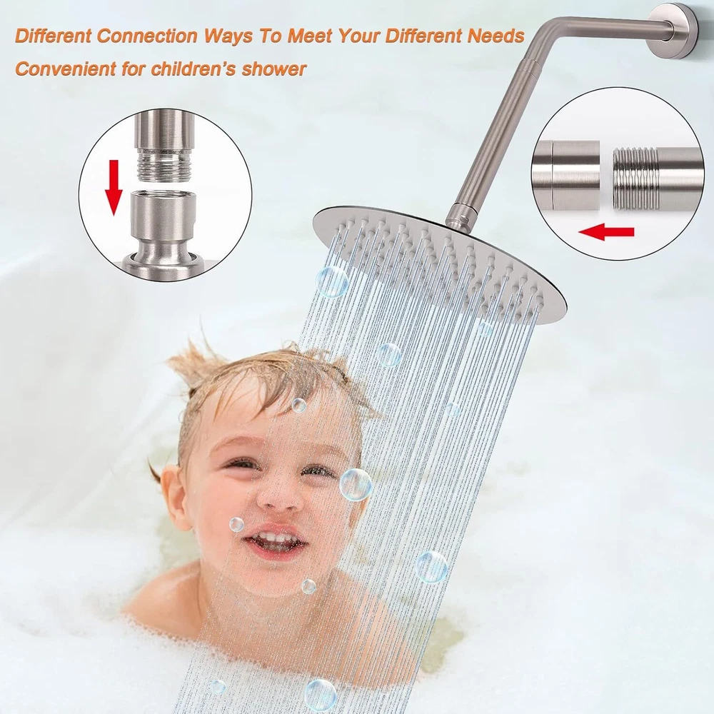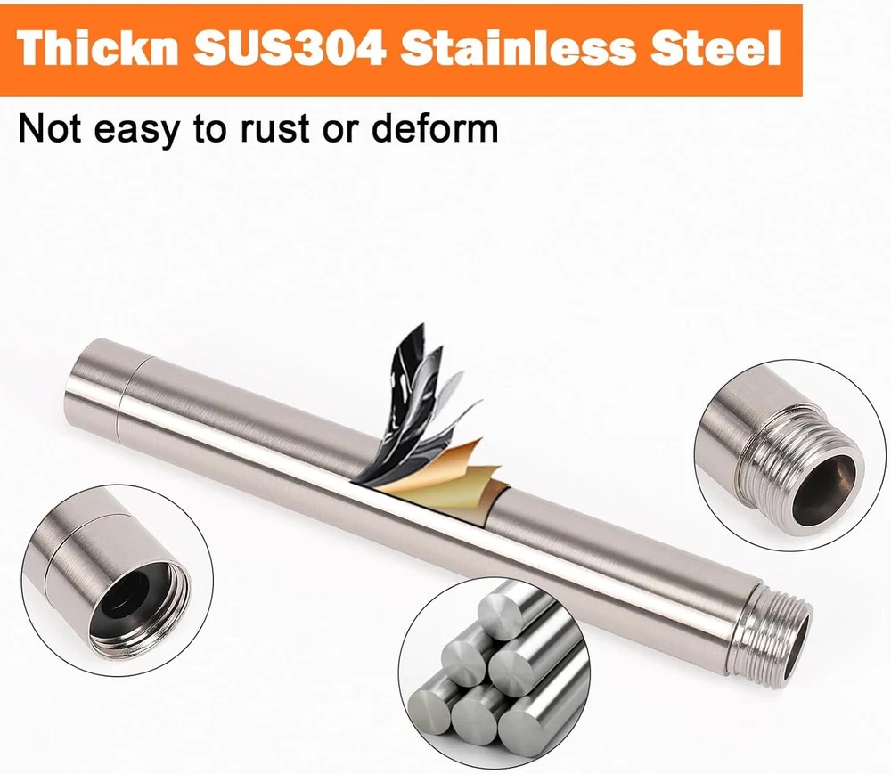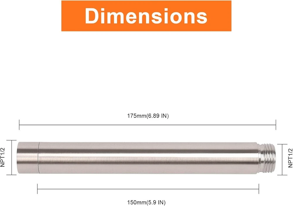 HarJue Shower Head Extension Arm, Extender Water Brushed Nickel Product Details Brand: HarJue Style: 6 Inch Shape: Round Material: Nickel Finish Type: Brushed Setting Type: Rain Installation Type: Wall Mounted Color: Brushed Nickel Number of Jets: 1 Special Feature: Adjustable length, Stainless steel material Manufacturer: HarJue Item Weight: 5 ounces Package Dimensions: 7.17 x 2.52 x 2.2 inches Finish: Brushed Special Features: Adjustable length, Stainless steel material Batteries Included?: No Batteries Required?: No Brand: HarJue Style: 6 Inch Shape: Round Material: Nickel Finish Type: Brushed HIGH QUALITY MATERIAL: Constructed of high quality stainless steel with solid and anti-rust. UNIVERSAL THREADS: Universal U.S 1/2 NPT Tapered Threads. Fit for all standard shower head and shower arm. STYLISH DESIGN: With elegant and unique look, HarJue shower head extender creates a modern and stylish feeling to your home. Suitable for all styles of bathroom decor. QUICK INSTALLATION: Very simple and quick to install in a few minutes without necessary to call a plumber.