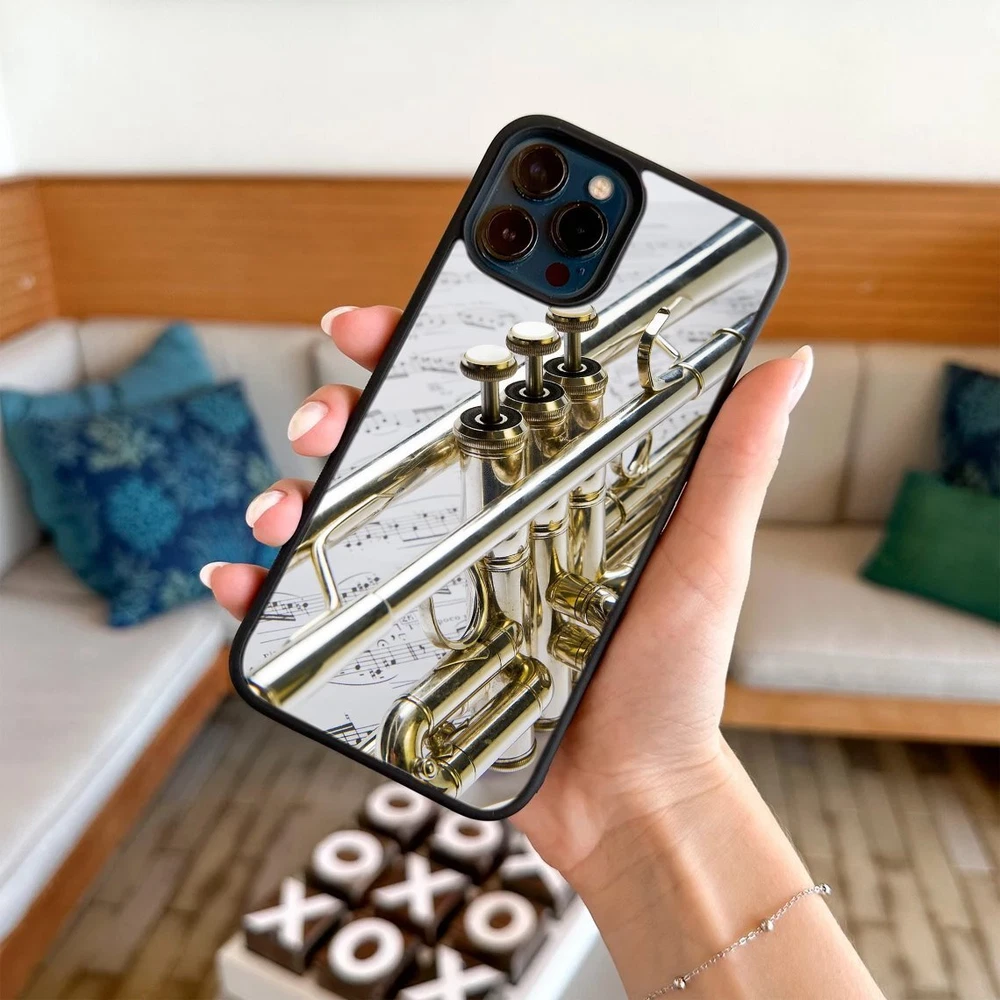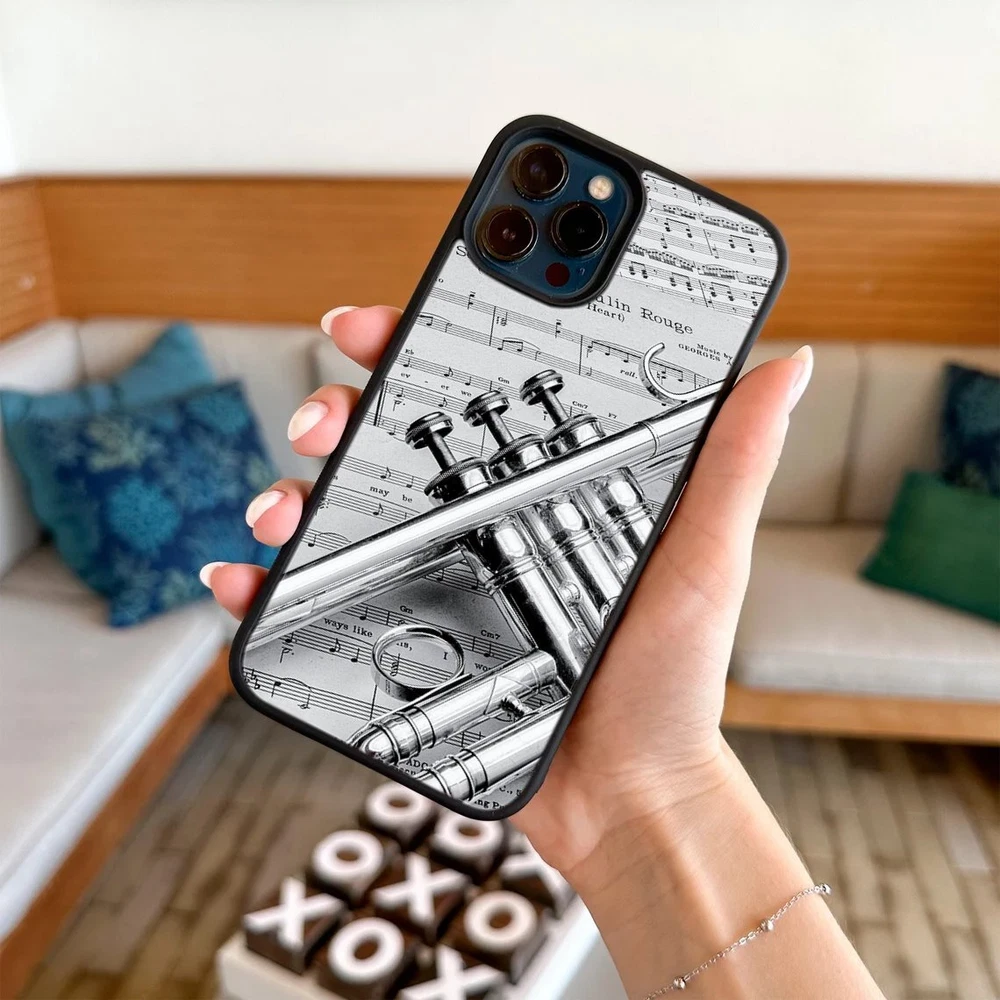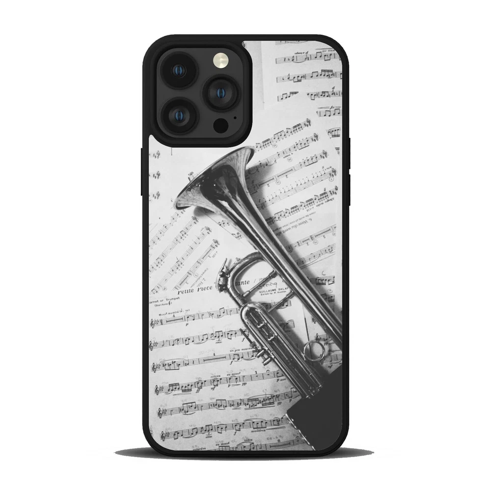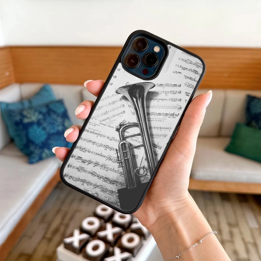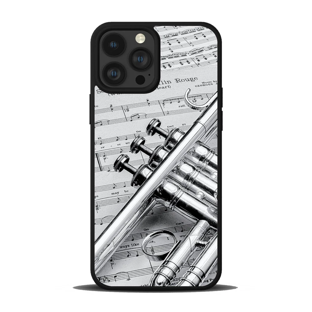 Hard Black Case Silver trumpet Sheet Music For Apple iPhone SE 11 12 13 14 15 16