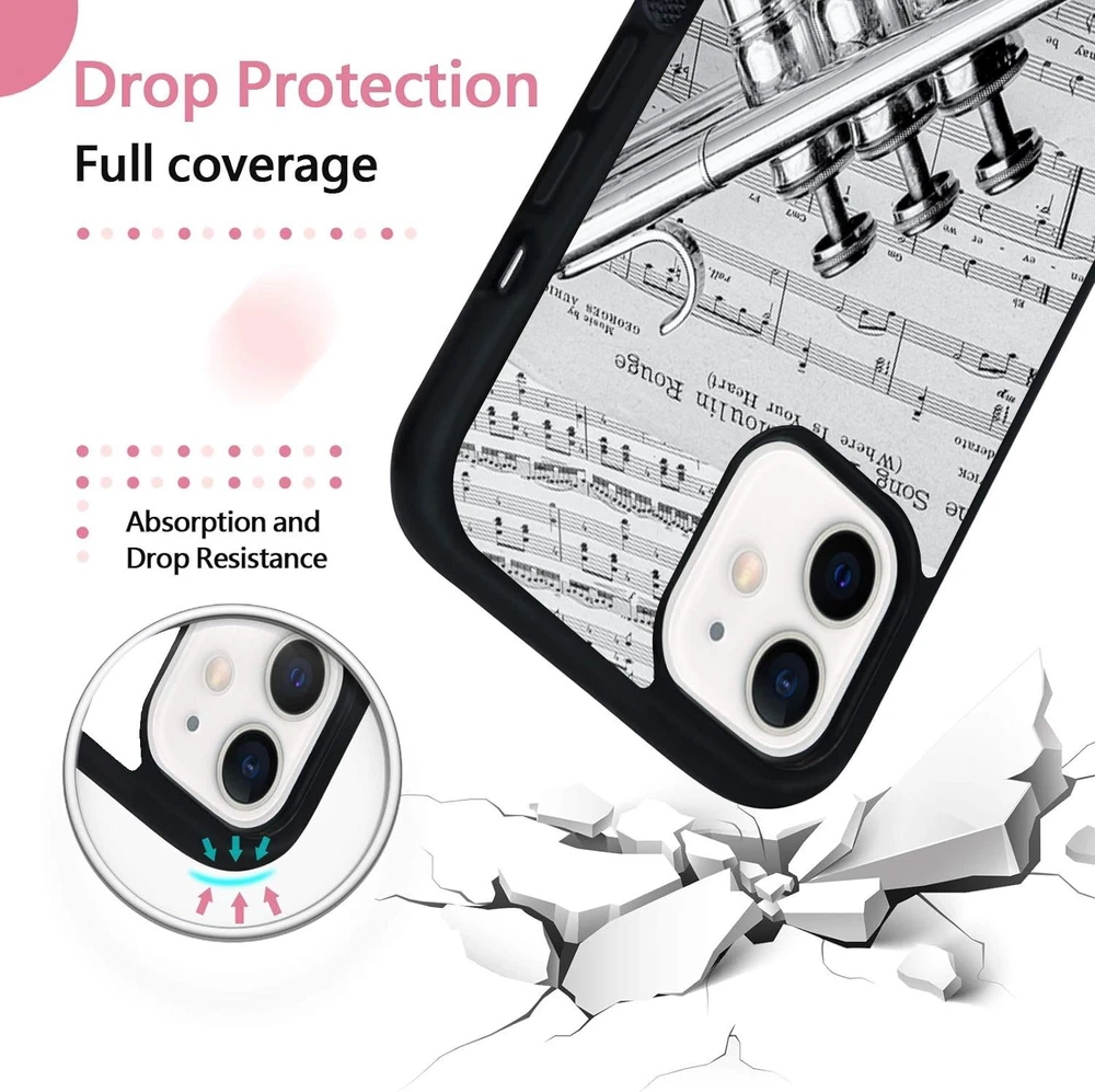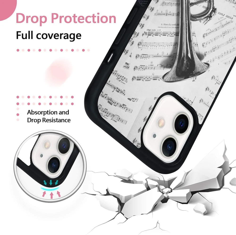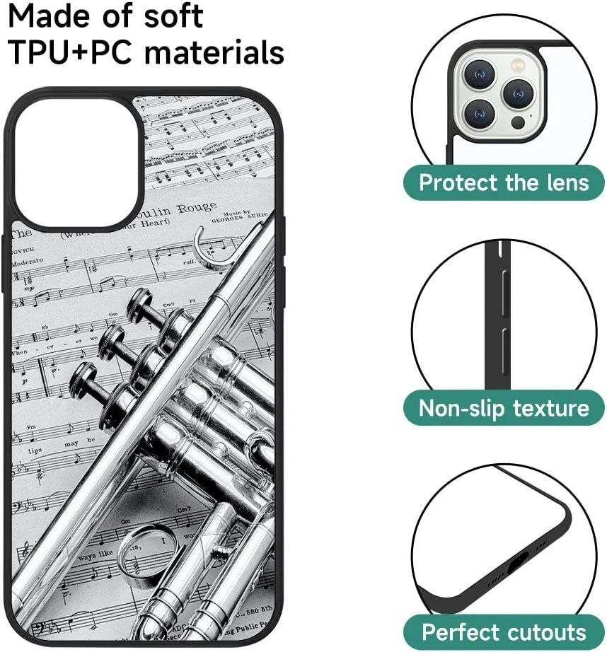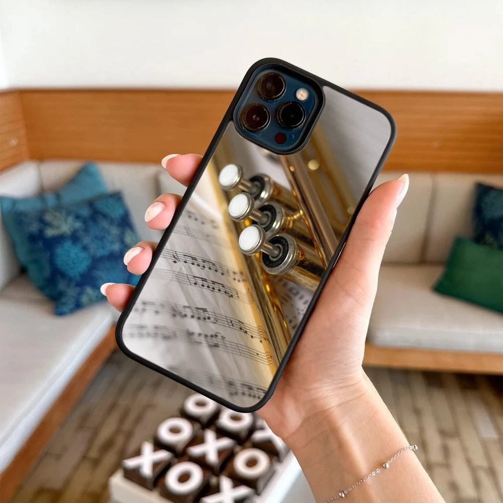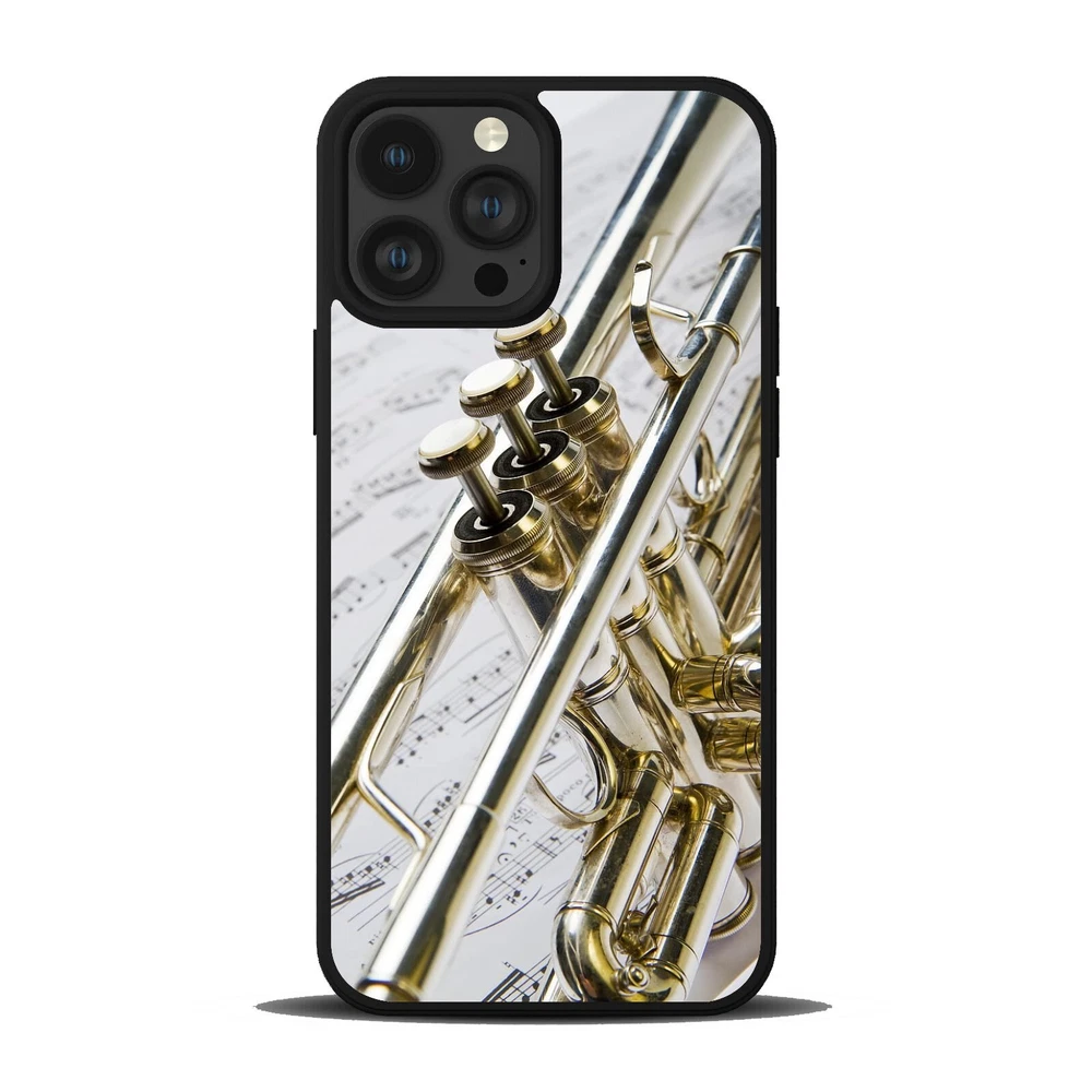 Hard Black Case Silver trumpet Sheet Music For Apple iPhone SE 11 12 13 14 15 16