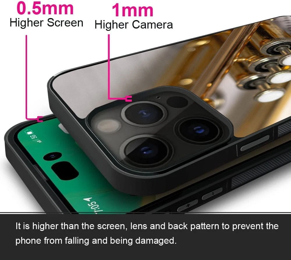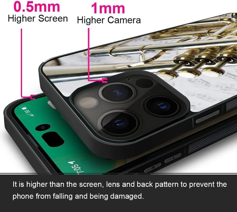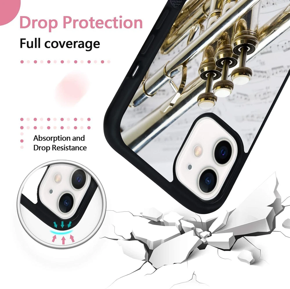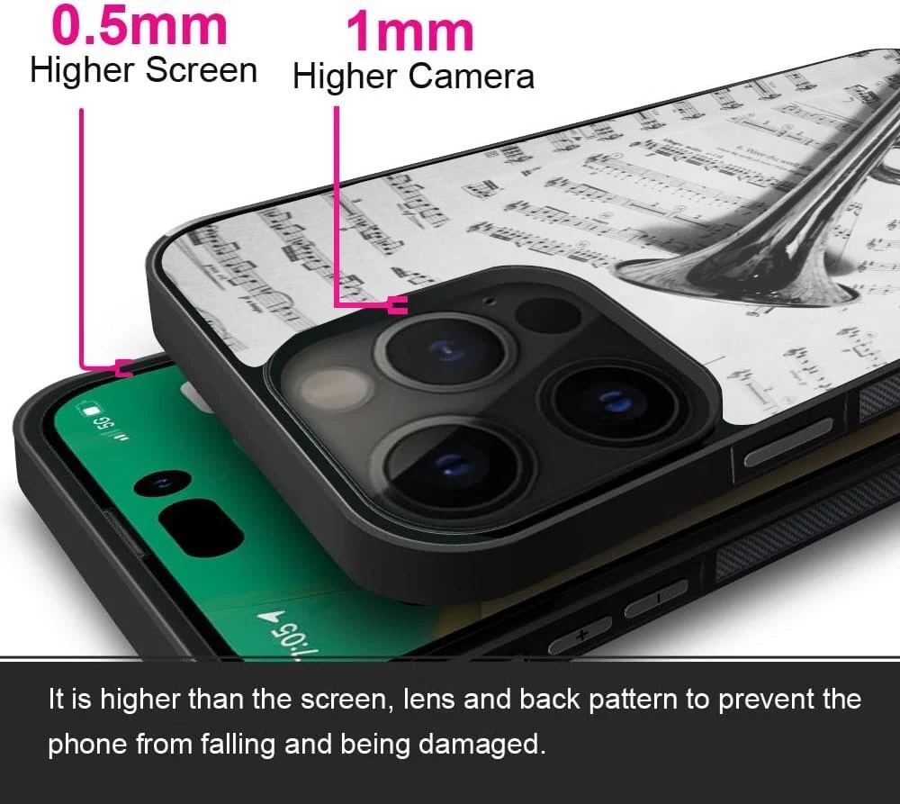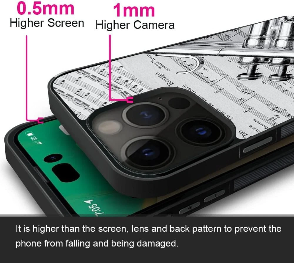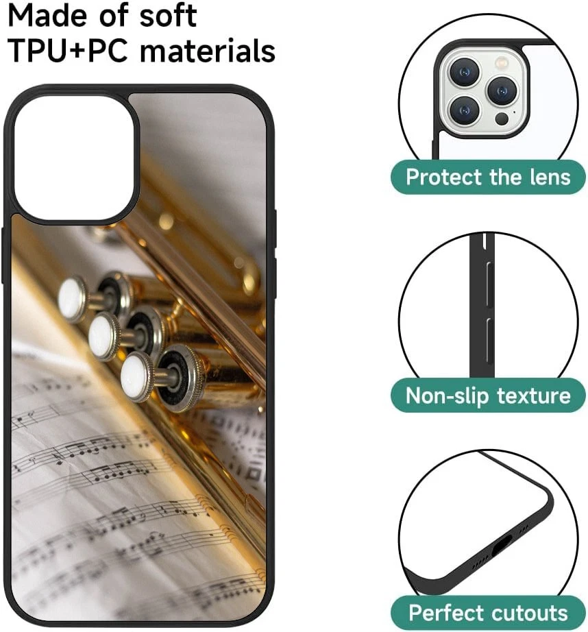 Hard Black Case Silver trumpet Sheet Music For Apple iPhone SE 11 12 13 14 15 16
