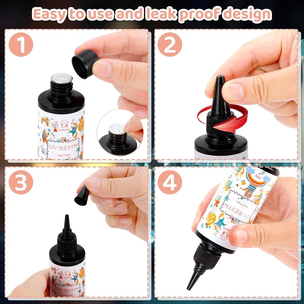 NEW Quality Guaranteed: partners with certified manufacturers to deliver safe, non-toxic, eco-friendly UV resin for reliable, high-quality results. Easy to Use: No mixing or measuring needed! Cures quickly under UV light, perfect for both beginners and experienced crafters. Crystal Clear & Hard: Provides a glossy, bubble-free finish with excellent hardness and transparency for professional-looking results. Versatile Application: Ideal for jewelry making, casting, coating, resin art, and more. Mix with mica powder or glitter for endless creative possibilities. Worry-Free: If you're not satisfied, anytime—our team will assist you within 12 hours.