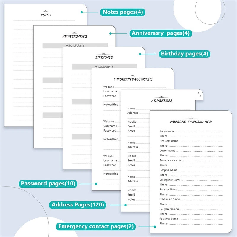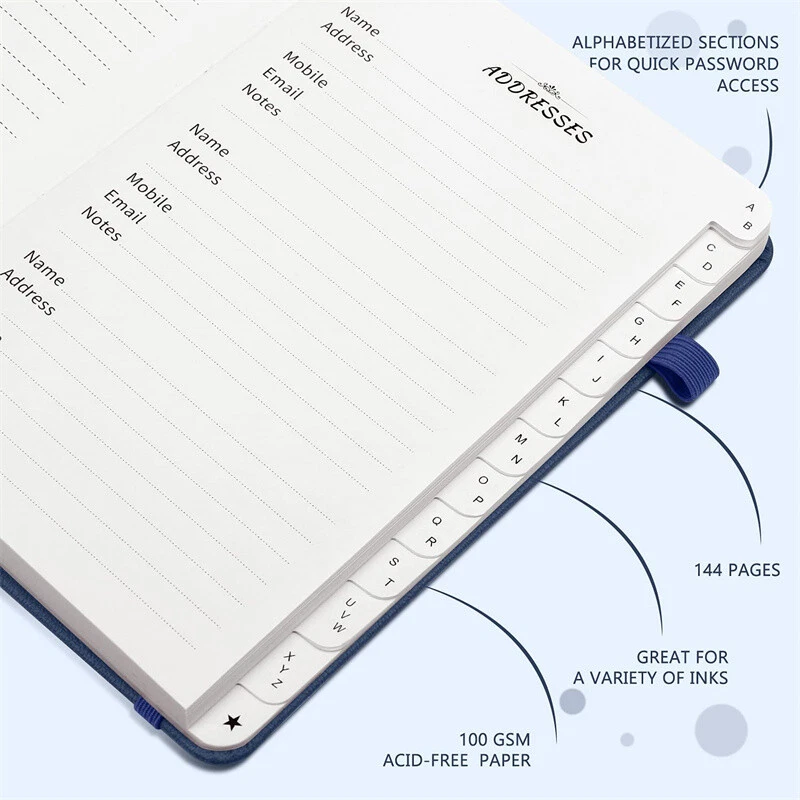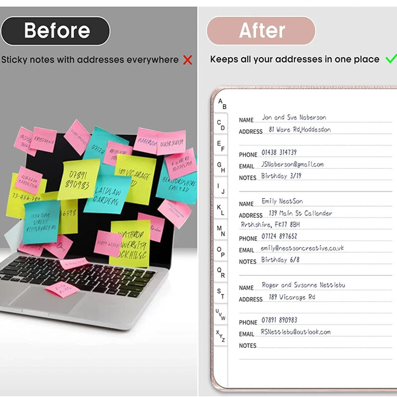 Address Book with Alphabetical Tabs, Hardcover Password Keeper and Telephone Book Address Organizer Record Contacts Journal Book JUBTIC Address book with Alphabetical Tabs, Hardcover Password Keeper and Telephone Book Address Organizer for Contacts, Internet Login Address Log book Journal Notebook for Home or Office ✅ Make Life Way Organized and Easier - The A5 small address book can store all your emergency contacts, telephone, address, passwords, birthday and anniversary, keep all your contacts well organized in one place, never forget important contact information again. ✅ Practical and Classic Design: Address notebook is made of thick no-bleed 100gsm paper with 7 mm line's width for easy writing and reducing ink leakage. The internet address book comes with an elastic band, pen holder, 1 bookmark, 1 accordion pocket at the end for loose items, twin-wire binding design allows the address journal to lay flat. ✅ A-Z TABS and Easy To Use: Address holder book with alphabetical tab, go straight to the details you need and locate addresses quickly. ✅ Super Functional and Ample space: 5.2 inches ×7.7 inches size telephone address & birthday book with 144 pages total. 3 entries per page and 30 entries per tab, total 360 entries for telephone & address, 10 pages with 30 entries for password, 4 pages 12- month birthday & important dates, 1 emergency contact page and 4 additional note pages for most important address so you can access them quickly. ✅ Great Gift for Women Or Seniors: Easy to manage and organize all addresses and contacted information, no need to remember complicated synchrony bank make payment passwords and easy to keep track of contact information for family, friends and colleagues. Features: Type: Hardcover Address & Password Book Color: Black, Turquoise, Rose gold, Navy Blue. Medium Size: 127*190mm Material: PU leather+paper A-Z TABS: Go straight to the details you need and locate addresses quickly A deep back pocket: Provides big space to store loose items PREMIUM THICK PAPER: Thicker than normal.suitable for all kinds of pens and superior ink resistance and writes smooth. 1 Elastic closure band and 1 pen holder: Keep journal tightly close and protect it wel. Supplemental pages including: Note: 1. There is 2-3% difference according to manual measurement. 2. Please note that slight color difference should be acceptable due to the light and screen.Thanks for your understanding! Package Included: (Just As Your Order Choose!!!) 1 / 2 x Address Book With Alphabetical Tabs Hardcover Password Keeper Telephone Book Payment Delivery details Terms of sales About us Contact us Payment ★ We currently accept payment via eBay managed payments only. ★ Once payment is cleared, we will dispatch your shipment within 1-2 business days. ★ Please refer to the "Shipping" tab for more information regarding shipping speed to your destination. Delivery details ★ We will arrange to ship for you in 1-2 business days when we get the full payment, If you make the payment at Friday ,Saturday and Sunday, We'll all arrange it on the following Monday Or Tuesday. (Saturday and Sunday do not arrange shipment). ★ All items will be shipped to buy's Ebay shipping address. Please check your address is right. We do not accept P.O. Boxes, APO, or AFO addresses. Please provide a physical address. ★ Usually it will take 3-7 days to arrive US .Thank you for your patience and understanding. Terms of sales ★ We provide 30 days return policy, buyer should bear the cost of shipping the item back. We will issue a full refund after we receive the return package. ★ All returned items must be in the original packaging and the returnning tracking number must be provided, specific reason for the return, and your E-BAY ID. About us ★ We are a professional ebay seller with professional sales team , customer service team, quality control team and purchasing team. ★ All of the items are tested before posted, you can get a high-quality item from our store. ★ Note: Do not hesitate to contact us anytime before and after your purchase, we are committed to your 100% customer satisfaction. Contact us Working time : (GMT +8) am 9:00 to pm 5:00(Mon-Fri) ★ If there is any questions, please contact us thr eBay message. ★ Your satisfaction is our top priority, our aim is to make all our customers as happy as possible whilst shopping with us. If there is any question or problem, please do not hesitate to contact us and we will make every effort to respond to all customer service inquiries as soon as possible. ★ If you are not happy with the purchase, please do NOT leave negative feedback or open case before contacting us, just let us know and we will resolve the issue for you !