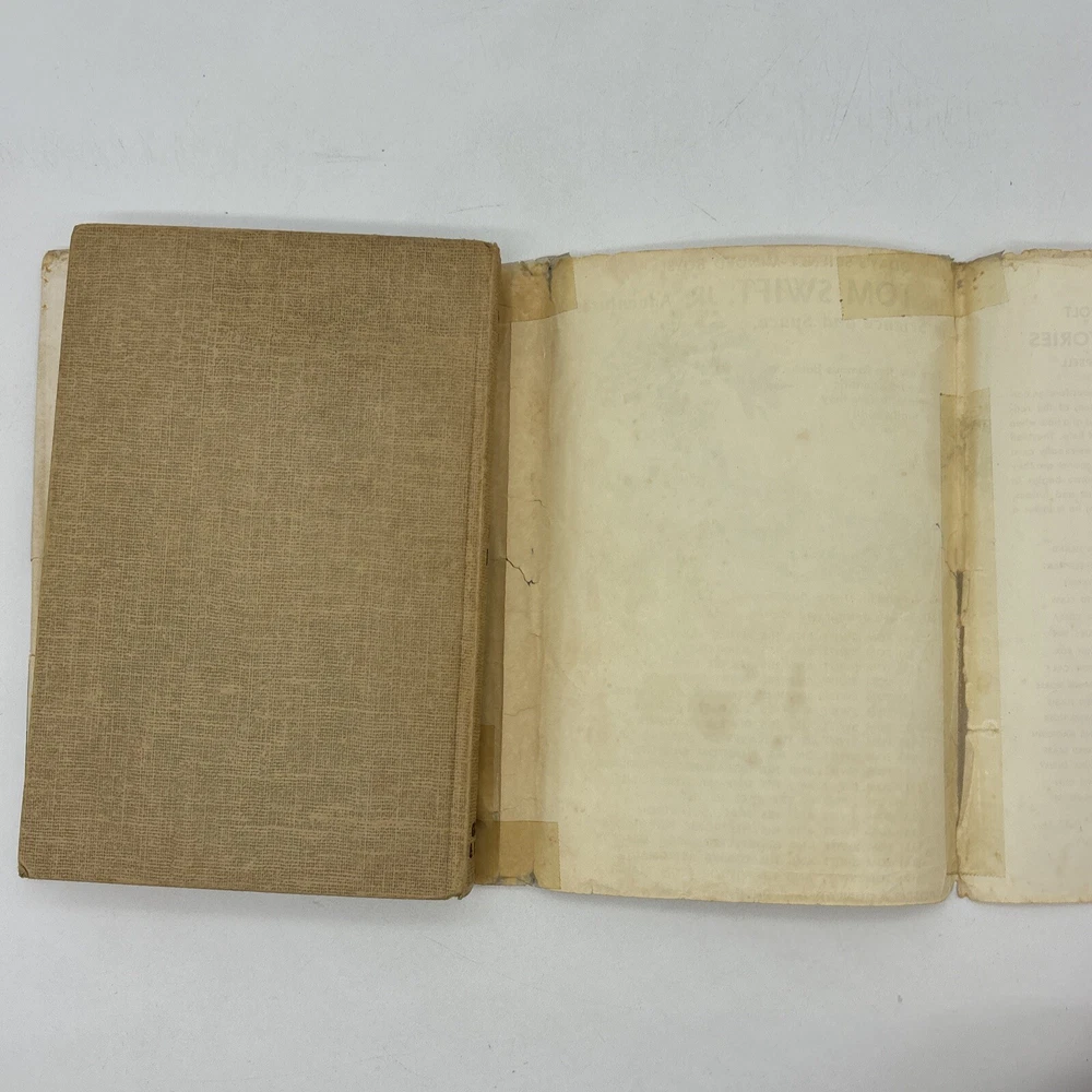 Dust jacket has heavy wear and tear as well as several repairs made with cellophane tape. The book itself is in better condition, but has minor damage to the hinges. There are some pencil marks on the title page, and the previous owners name under the front cover. The edges of the pages have minor discoloration from age. Please see pictures.