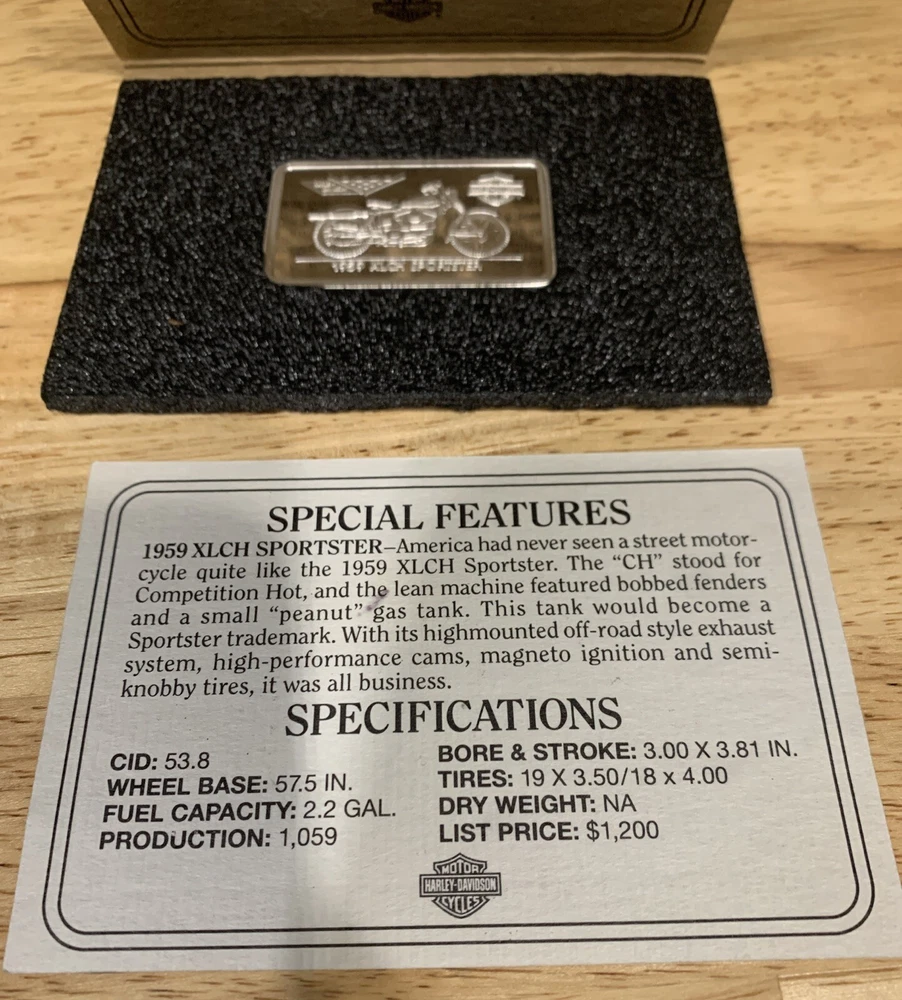 Comes in box/sleeve. Has certificate of authentication. Weighs 1.4 ounces and is .999 fine silver. An official Harley-Davidson Licenses Product. The brown sleeve has some small black & white marks on it. The CoA has some black marks on it. The bar has some scratches on it. Please review all pictures.