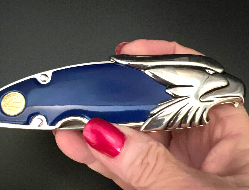 This Harley Davidson Series pocketknife by Franklin Mint is a must-have for any collector or fan of the iconic brand. The knife features a multi-colored handle and a plain edge stainless steel blade with a spear point. It is manually opened and has one blade. The handle is made of plastic and the knife is an original, not a reproduction. This knife is part of the Easy Rider Collector series and is perfect for display or use. The knife is a great addition to any collection and is sure to impress any fan of Harley Davidson. This knife has not been used and i in very nice condition I will pack with care and get it to you ASAP Thank you for looking !