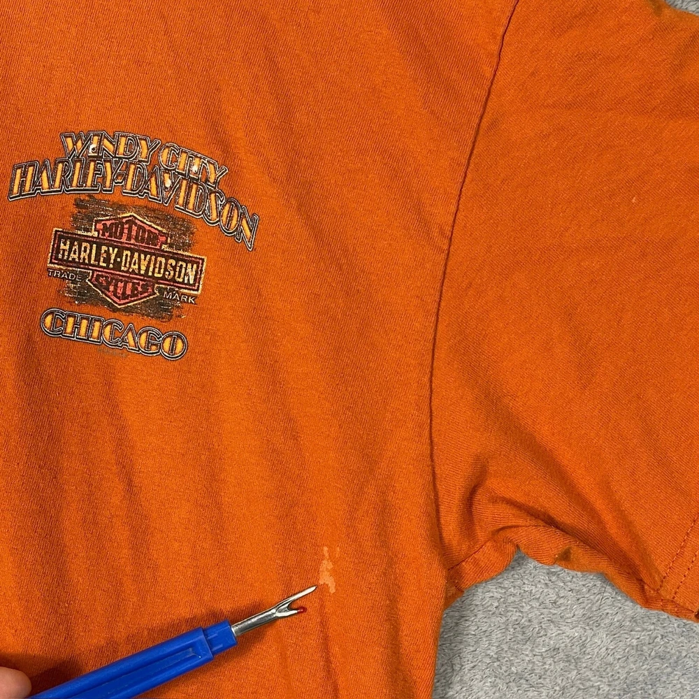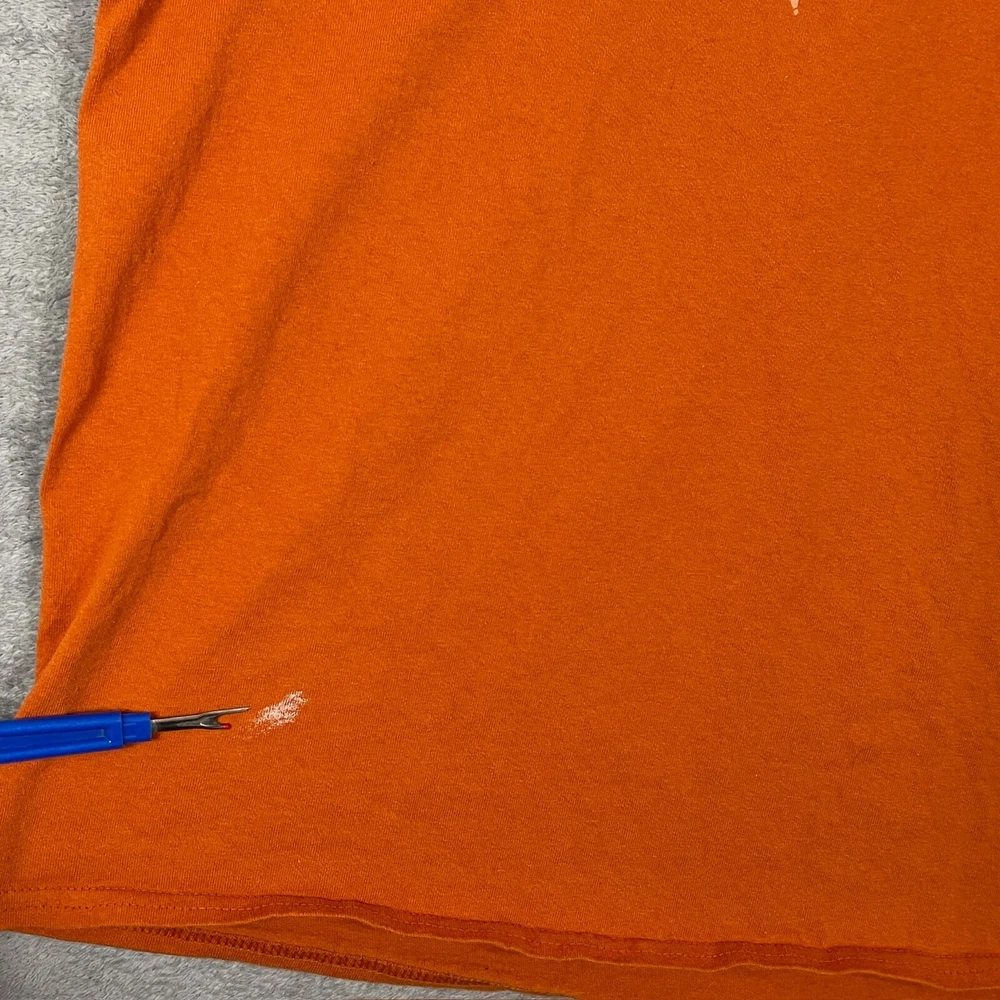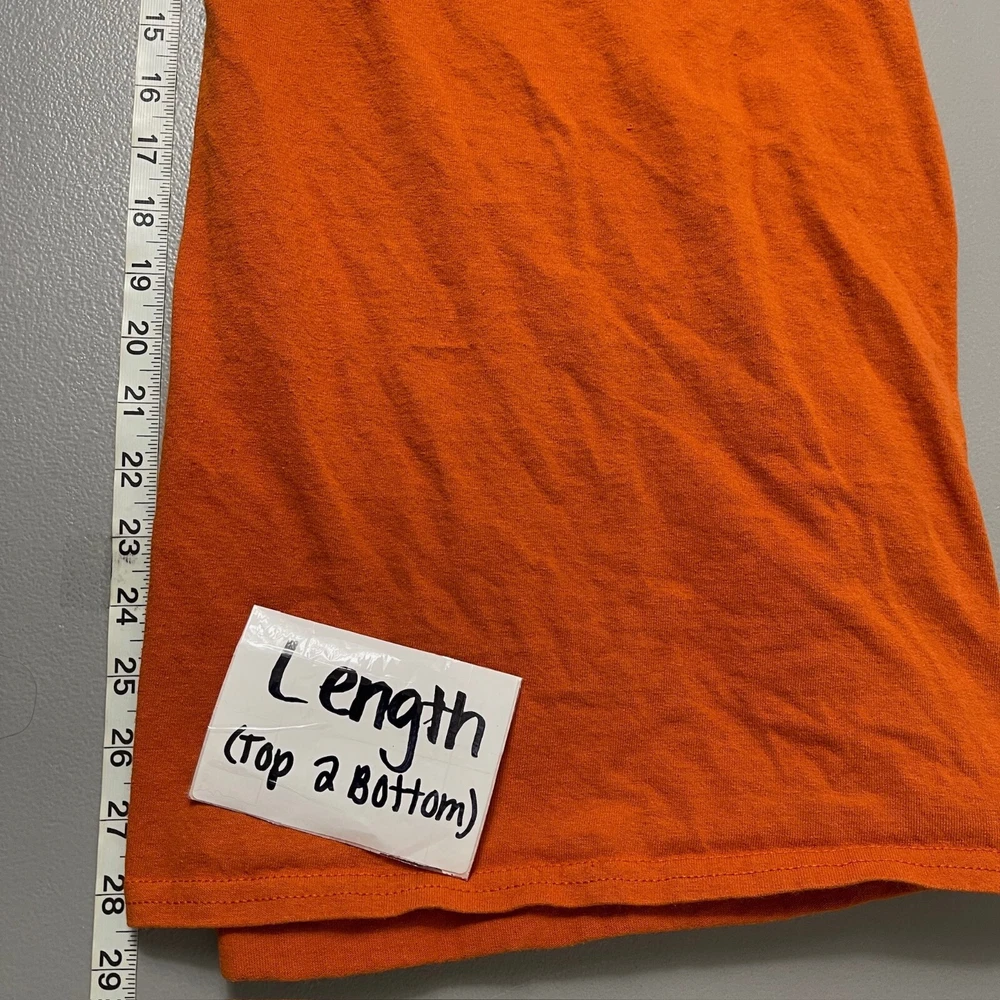 Thank you for your interest in this item! We do our best to provide the most accurate description so you know exactly what you’re buying. If there’s something we missed or you decide this piece just isn’t right for you, you’re welcome to return it within 30 days of delivery no questions asked. Every purchase supports our small business and will be handled with care, all orders ship within one business day and often the same day! Size: Men's Large (see condition) Color: Orange Condition: Good pre-owned condition, defects shown in photos; size tag reads XL but shirt fits like large - see measurements in photos *All clothing items have been properly cleaned per eBay standards