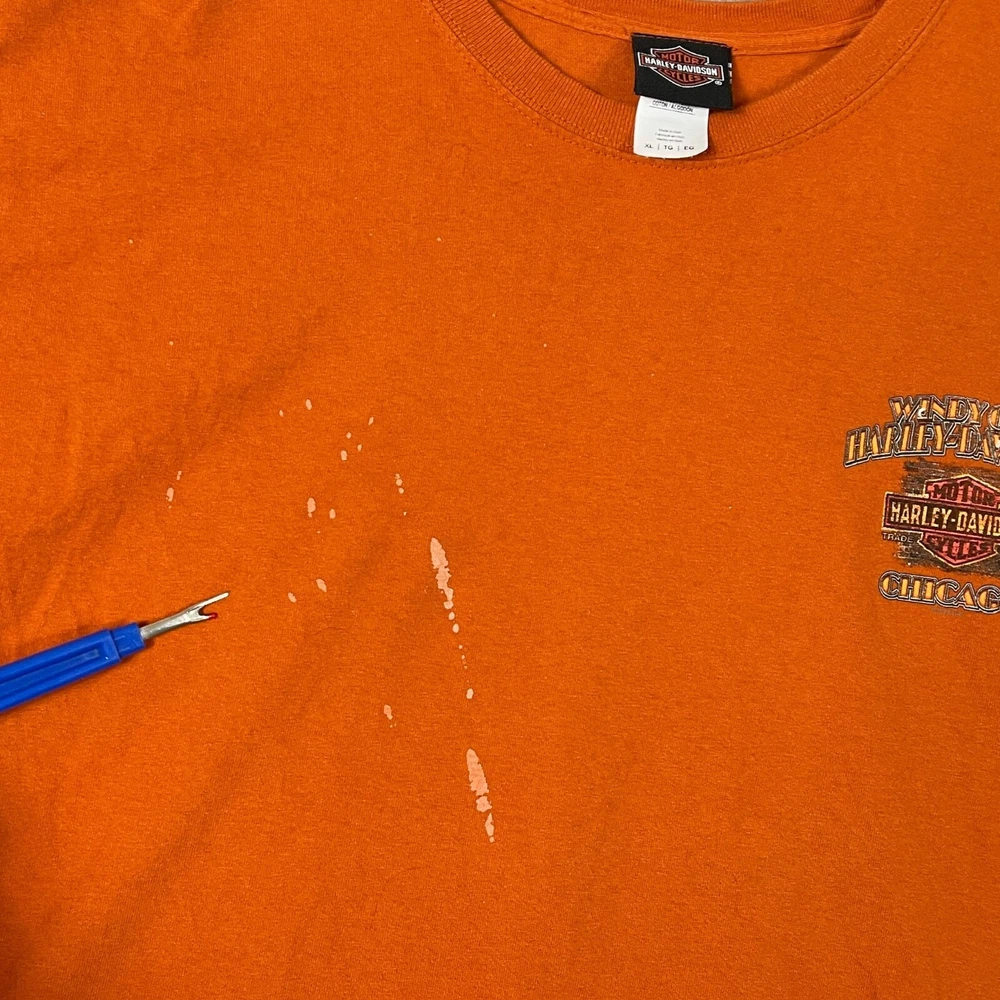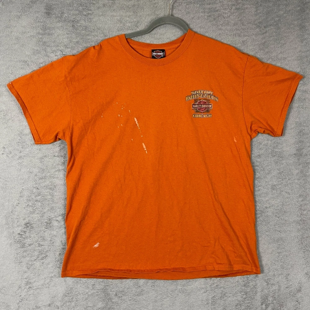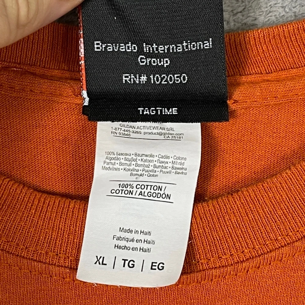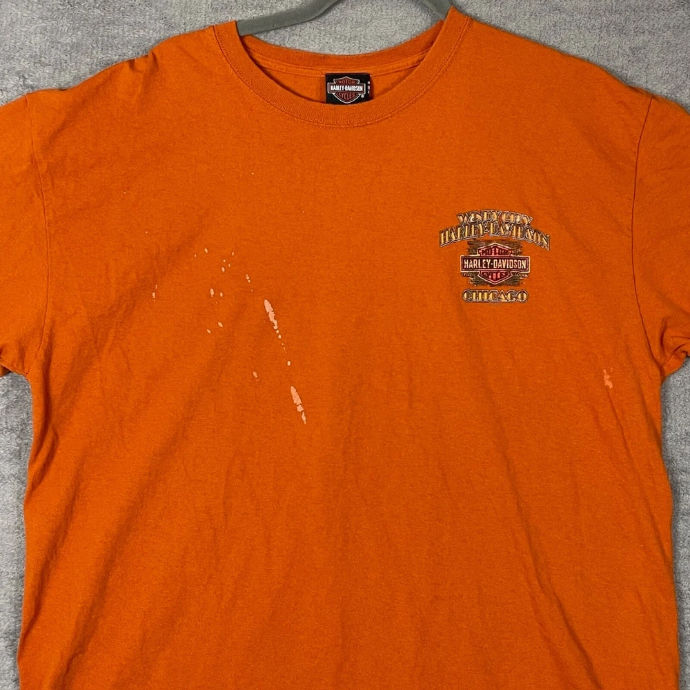 Thank you for your interest in this item! We do our best to provide the most accurate description so you know exactly what you’re buying. If there’s something we missed or you decide this piece just isn’t right for you, you’re welcome to return it within 30 days of delivery no questions asked. Every purchase supports our small business and will be handled with care, all orders ship within one business day and often the same day! Size: Men's Large (see condition) Color: Orange Condition: Good pre-owned condition, defects shown in photos; size tag reads XL but shirt fits like large - see measurements in photos *All clothing items have been properly cleaned per eBay standards