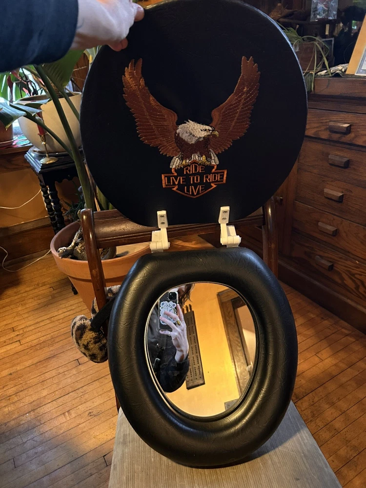 In excellent condition. Never used as a toilet seat. Mirror is great shape.