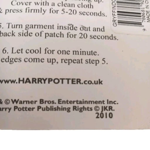 Harry Potte Gryffindor Embroidered Patch Emblem Iron On 2010 New In Package Approximately 3.5" x 2.5" New in original package