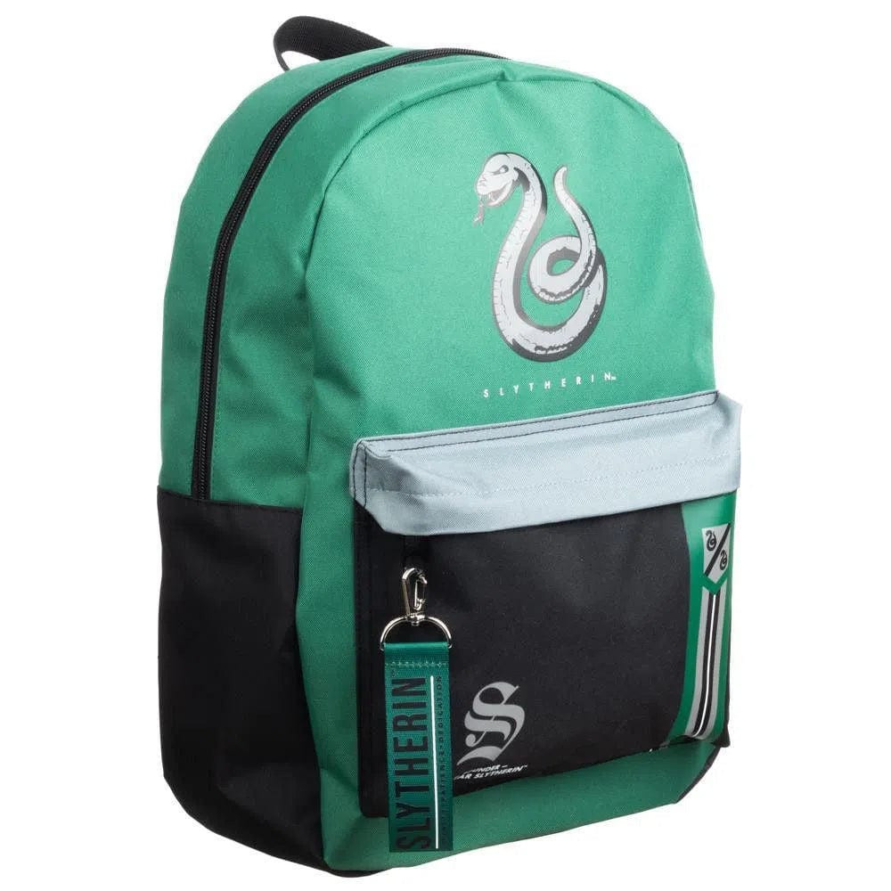 Harry Potter - Slytherin Mixblock Laptop Backpack - Bioworld Condition: New Show your Slytherin pride with the Harry Potter - Slytherin Mixblock Laptop Backpack by Bioworld. Designed for fans of the famous Hogwarts house, this backpack features a bold mix of colors and house-themed details that represent the cunning and ambition of Slytherin. Whether you're heading to school, work, or a magical adventure, this backpack provides both style and functionality. Crafted from durable polyester and PP webbing, this backpack is built to last. It features a front zipper pocket for easy access to smaller items and a dedicated laptop pocket to securely store your device. The webbing zipper puller adds a stylish and practical touch, ensuring smooth and easy access to your belongings. With dimensions of 16" H x 11.25" W x 4.5" D, this backpack offers ample space for your laptop, books, and other essentials. The durable materials ensure it can withstand daily use, while the easy-care instructions—simply wipe clean with a damp cloth—make maintenance a breeze. Imported with attention to detail, this Slytherin Mixblock Laptop Backpack is a must-have for any fan of Harry Potter who wants to carry their house pride in style.