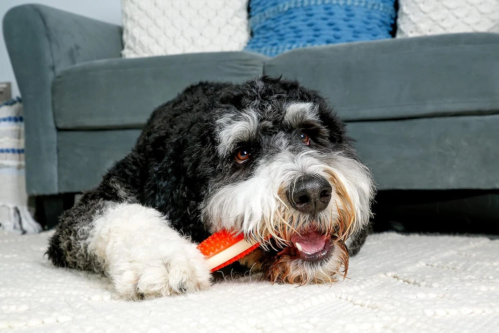 Hartz Chew 'n Clean Tuff Bone, Dental Dog Chew Toy, Medium, Color May Vary (Pack Of 24) Hartz Chew ‘n Clean Tuff Bone satisfies your dog's natural desire to chew. These durable chew toys are textured with nubs that gently massage and exercise your dog's gums, keep teeth clean, and support overall better dental hygiene. These chew toys have a bacon scent to entice your dog to chew while promoting those dental benefits. About this item This patented design is assembled from durable nylon and polyurethane with a textured surface to withstand active chewing from both puppy teething and adult dogs The nubs gently massage your dog's gums and help to clean teeth by keeping tartar and plaque at bay Enticing bacon-scented chew toy to pique your pup's interest and support their natural desire and behavior to chew Always select toys appropriate for your dog's size and chewing habits and be sure to supervise your pet's chew and playtime. Additional Chew ‘n Clean Dog Chew Toys available are bacon-scented Twisty Bones for mild to moderate chewers and Dental Duos for a toy & bacon flavored dental treat all in one Chew ‘n Clean Tuff Bones are perfect for puppies teething and mild to moderate chewing for adult dogs. Chew ‘n Clean Tuff Bones are available in a range of different sizes to fit every dog's chewing needs!