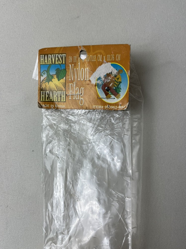 Harvest Hearth Nylon House Flag 28x40 NEW! Scarecrow Black Crow. Not your basic oblong flag....sculpted edges! This flag is new, I opened it to photograph. I didn't see any reason to roll it pack up, I will however include the original packaging.