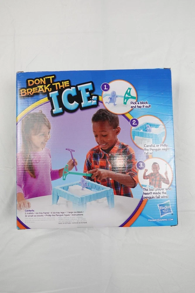 Further Details Title: Hasbro Gaming - Don't Break The Ice Condition: New Description: PRODUKTBESCHREIBUNGEN Im Don't Break the Ice Spiel müssen die Spieler Phillip dem Pinguin helfen, einige Eisblöcke zu hacken, damit er ein neues Iglu machen kann. Brrrrr, dass Wasser kalt ist, auch für ihn! Dieses Spiel für Vorschüler und Kinder ab 3 Jahren ist voller Spannung, während die Spieler abwechselnd die Eisblöcke herausklopfen. Aber aufgepasst! Wenn ein Spieler das Eis bricht und Phillip durchfällt, ist er raus! Setzen Sie die Blöcke zurück, um eine neue Runde mit den verbleibenden Spielern zu beginnen. Der letzte Spieler, der Phillip nicht durchs Eis fallen ließ, ist der Gewinner. Bringen Sie dieses lustige Vorschulspiel heraus, wenn Sie nach Spielen für Familienspielabend, Spielen für Gruppen und Spiele für Familien und Kinder suchen. Hasbro Gaming und alle damit verbundenen Warenzeichen und Logos sind Warenzeichen von Hasbro, Inc. Age Level: 3 years and up Age Level: Kleinkind Brand: Hasbro Country/Region of Manufacture: China Color: Mehrfarbig Item Weight: 1 poundsg Material: Plastic Language: English Item Length: 64mm Item Width: 266mm Item Height: 266mm MPN: C2093 Type: Board Games Release Date: 06/01/2017 Theme: Cartoons Min. Number of Players: 2 - 4 Number of Pieces: 42 Players tap out ice blocks one by one To win, keep Phillip the Penguin on top Play with 2-4 players Includes 2 mallets, ice tray frame, 4 ice tray legs,1 large ice block, 32 small ice blocks, Phillip the Penguin figure, and instructions Players tap out ice blocks one by one To win, keep Phillip the Penguin on top Play with 2-4 players Includes 2 mallets, ice tray frame, 4 ice tray legs,1 large ice block, 32 small ice blocks, Phillip the Penguin figure, and instructions Missing Information? Please contact us if any details are missing and where possible we will add the information to our listing.