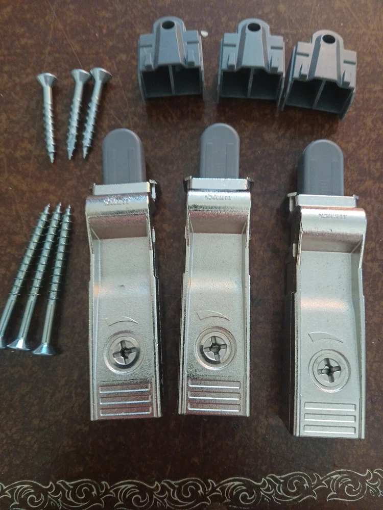 This product is a set of 3 Blum Blumotion soft closers in a Nickel finish. Each closer is designed to provide smooth and quiet closing of cabinet doors. Made by Blum in Austria, these closers offer a high-quality solution for cabinet hardware needs. The title suggests that the product is being offered at a competitive price.
