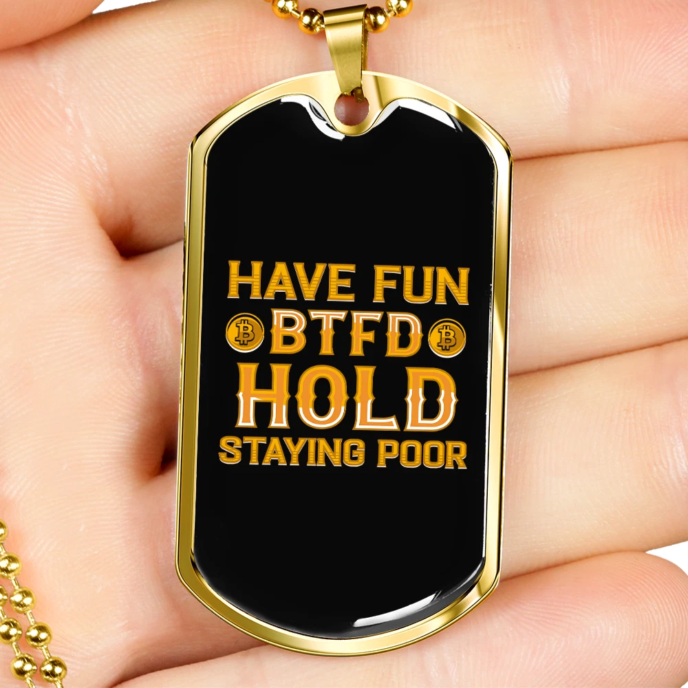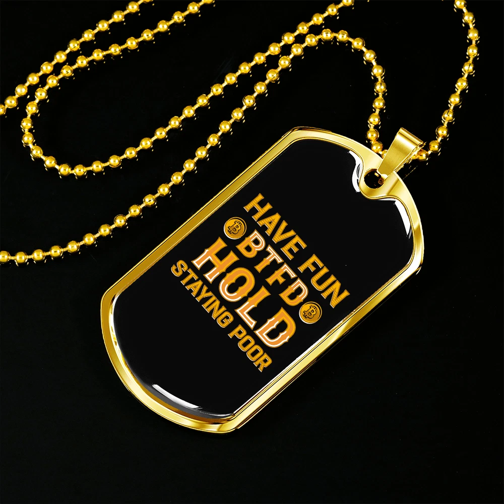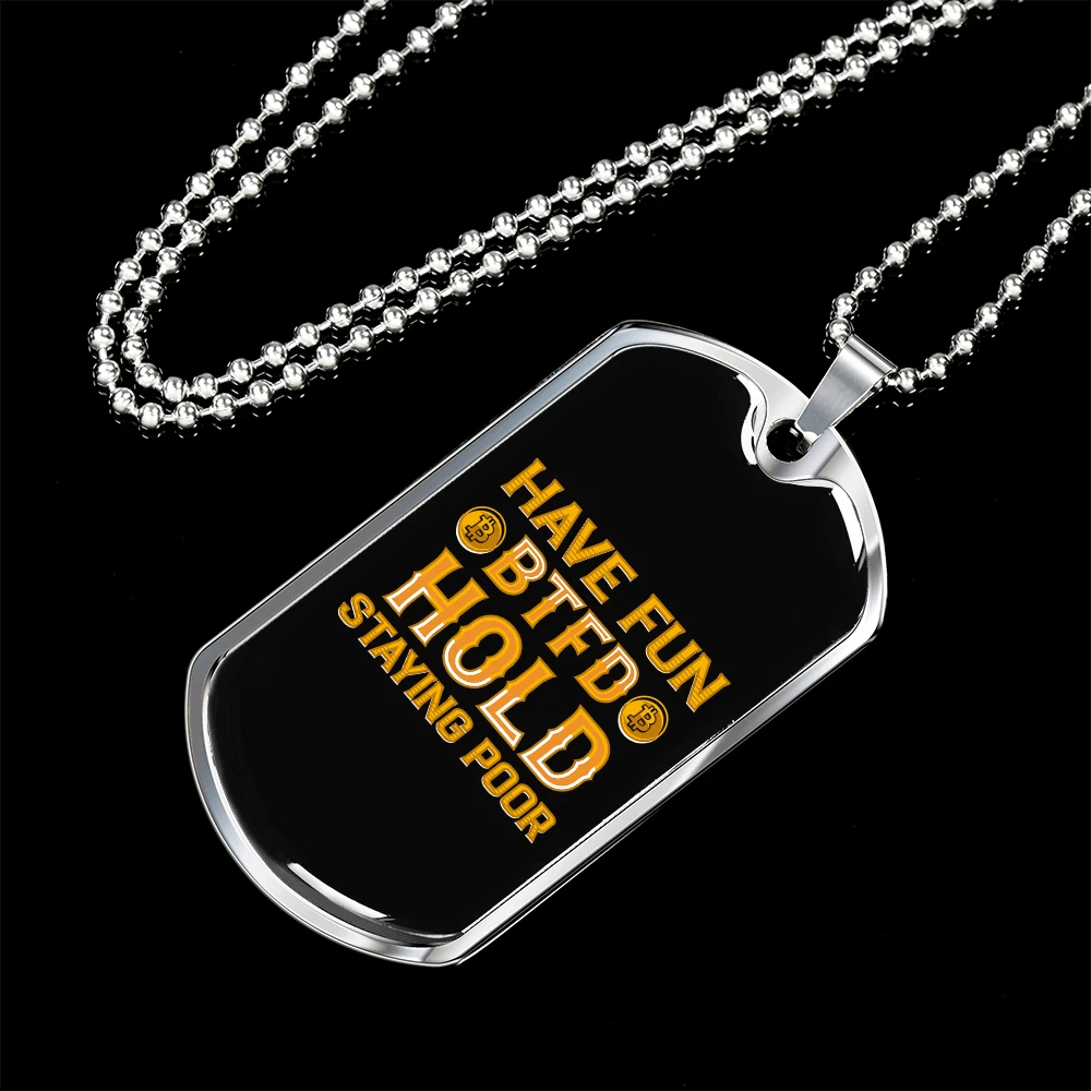 Have Fun BTFD Crypto Necklace Stainless Steel or 18k Gold Dog Tag 24" Chain