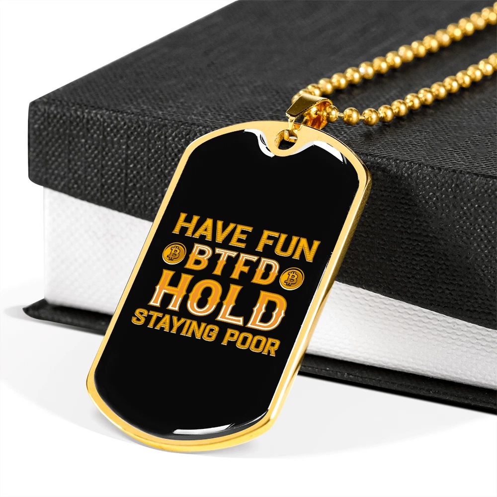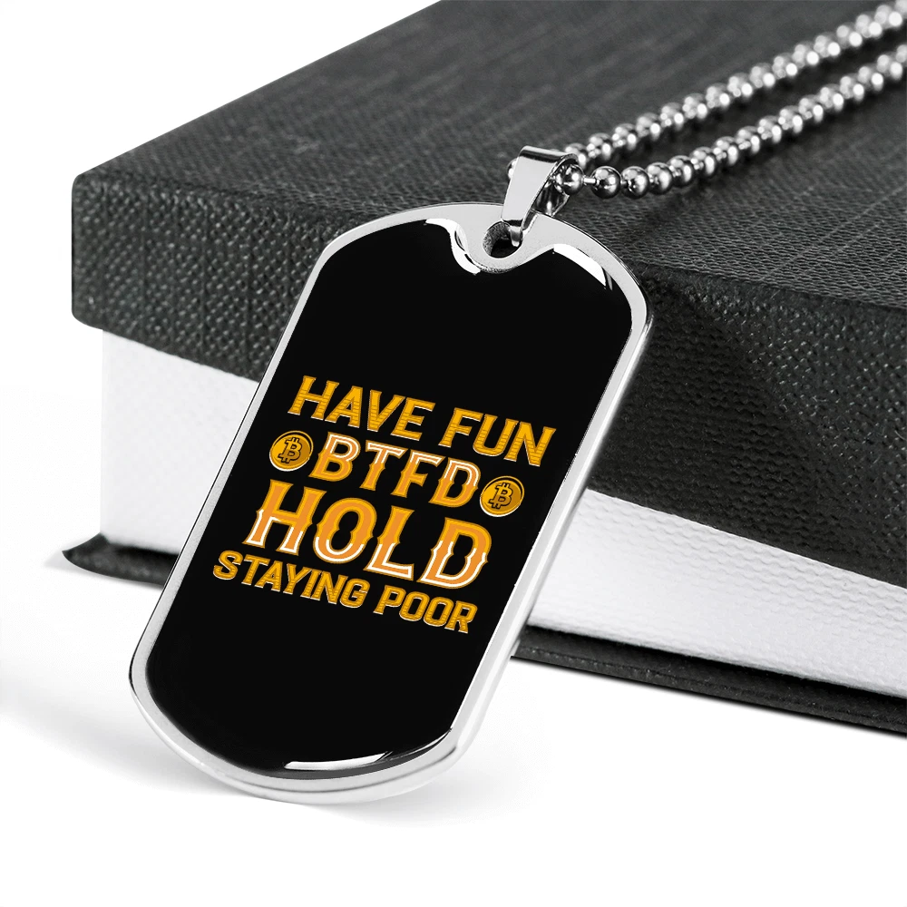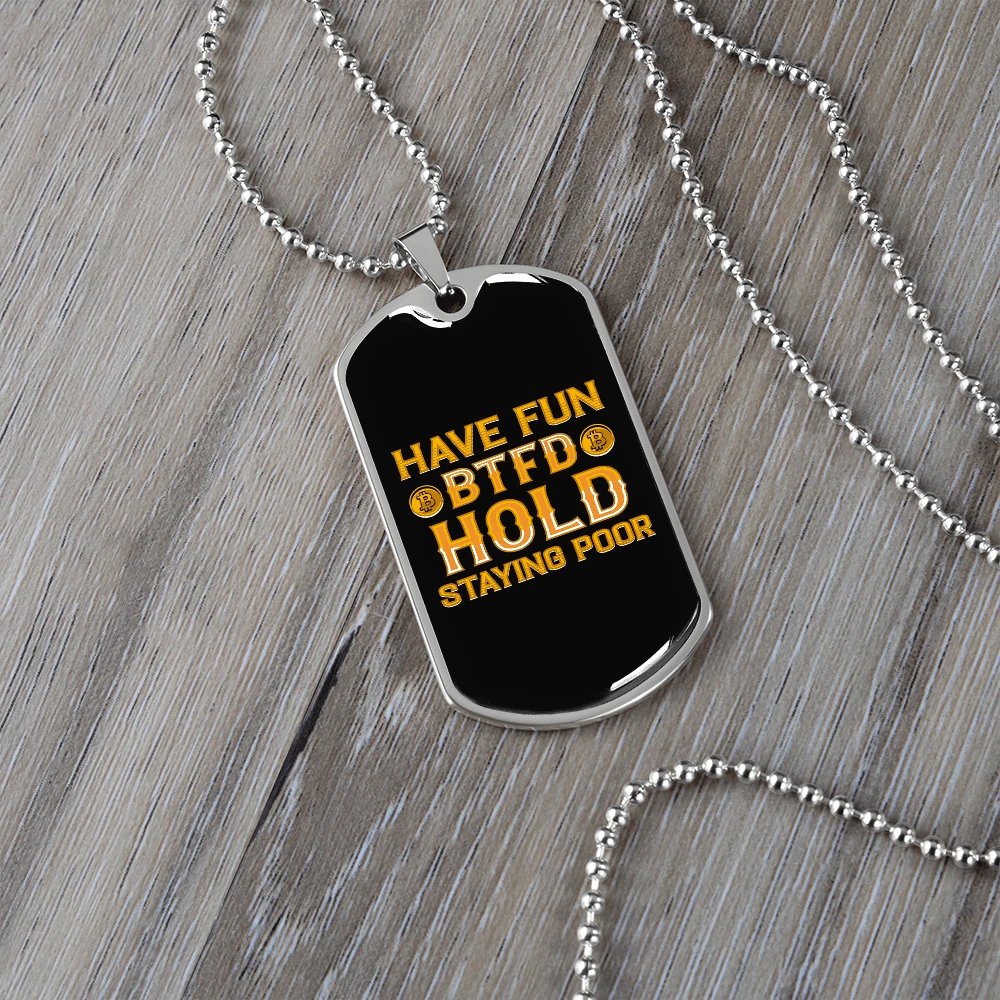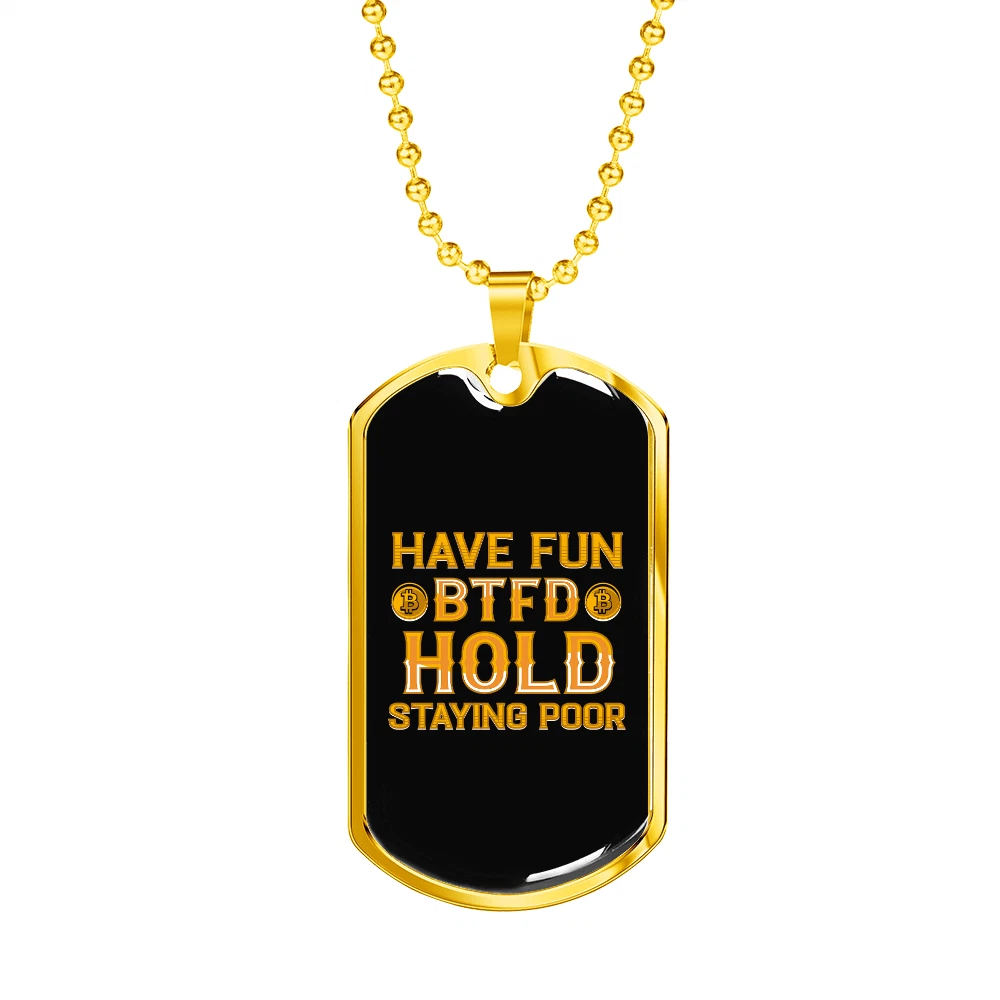 Have Fun BTFD Crypto Necklace Stainless Steel or 18k Gold Dog Tag 24" Chain