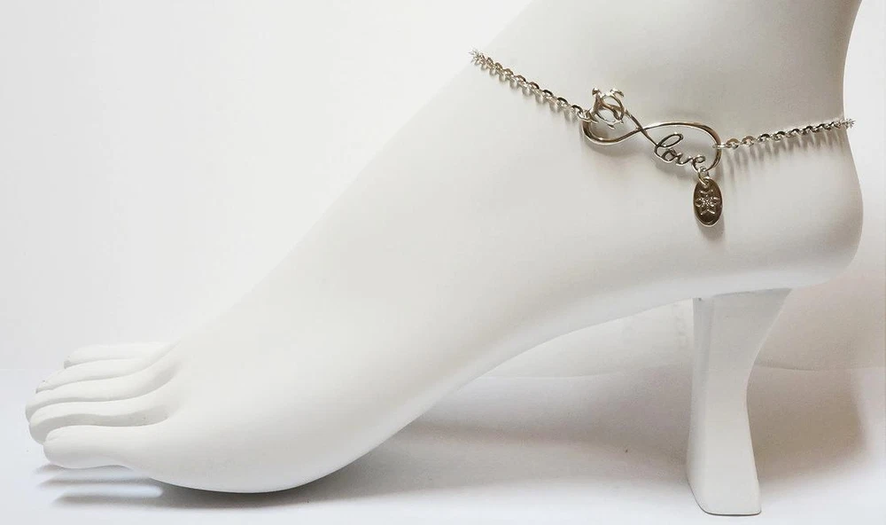 NOTE: Item's Picture/s Enlarged to Show the Fine Details. Brand New, Never Used Hawaiian-Designed, Rhodium-Silver Anklet. 100% Rhodium-Plated Over Solid .925 Sterling Silver (Not Plated, Not Bonded, Not Filled) Adjustable Chain Anklet With Diamond-Cut and Tropical Motif Accents. - Design: Hawaiian Infinity Love With Turtle Motif and Dangling Tag; Cutout, Openwork, Rhodium-Plated Over Solid Sterling Silver, Dangling Accent Tag With 6-Petal Plumeria Flower Front and "JoY" Engraved On Reverse, Diamond-Cut Flat Rolo Link Chain, High Polish Finish, Adjustable Lengths. - Measures: Infinity Loop Approx. 1 1/8" Widest X 3/8" High; Turtle Approx. Just Over 5/16" Widest X Just Under 3/8" Long; Dangling Tag Approx. Just Under 1/4" Widest X Just Over 3/8" Long; DC Flat Rolo Link Chain Approx. Just Under 1/8" Widest X 11.0" Long End to End. - Size: Adjustable Approx. 9.0"-11.0" Long (Using 2" Extension Links as Desired) . - Weight: Approx. 3.9-4.1 grams . - Closure: Round Spring-Ring Clasp . - Rhodium Care Tips: Very Little Polishing is Required For Silver Jewelry Plated With Rhodium. On Occasion You May Want to Polish This With a Soft Dry Cloth or Soft Cloth Moistened With Warm Water. Rhodium-Plating Gives Silver Jewelry the Expensive Look of Platinum or White Gold and is the Most Tarnish-Resistant of the Platinum Group Metals. Because Rhodium Has a Greater Resistance to Scratching and Abrasion, it is Ideal For Use in Jewelry Because it Keeps Silver Jewelry Looking New and Untarnished. It is Not Recommended to Use Harsh Cleaners, Detergents, Soaps, Shampoos, Jewelry Cloths, Jewelry Liquids or Jewelry Pastes, Chemicals, Chlorine, Body or Tanning Lotions, Ultrasonic Cleaners, Tarnish Creams, Saltwater, Showering, Swimming in Pools or Hot Tubs or the Ocean With Any Rhodium-Plated Sterling Silver Jewelry As These Will Potentially Damage or Dull the Rhodium Finish Over a Period of Time. Purchase Assurance of Quality: As Each of These Anklets Are Hand-Made, Each One is Slightly Unique For You to Enjoy. The Item's Picture/s Display All the Main Appearance Characteristics With Each Anklet Purchased. Stamped 925 For Assurance Mark of Solid .925 Sterling Silver Purity; Also Stamped Italy For the Assurance Mark of Superb Italian Construction and Workmanship. Item’s Picture/s Enlarged to Show the Fine Details. Hand-Crafted With "Aloha." Please Understand We Should Not Be Held Responsible For Delivery Time Once Your Order Has Shipped as We Are Not the Individuals Delivering Your Package. USPS Express Delivery (2-Days Guaranteed) From Hawai`i for All U.S. Addresses . Please Feel Free to Contact Us With Any Questions. Live Aloha! FLAT RATE COMBINED Shipping/Checkout: Please Process Your Own Invoice Transaction or Contact Us to Request Assistance With Your Checkout or to Adjust an Invoice Within 3-days After Completing All of Your Shopping. If You Are Purchasing Multiple Items, Please Do Not Complete a Separate Checkout Payment For Each Individual Item Separately! Unless Otherwise Noted, We Offer a Cost-Effective, Single FLAT RATE Combined Shipping For Unlimited Quantities Purchased When All Multiple Purchased Items Have Been Included Into One Order's Invoice During Your Checkout. At Times, Some Individual Items Within a Multiple Item Order Might Not Combine Properly Into One Flat Rate Checkout Invoice. In These Situations, Please Contact and Request Seller to Create Your Order's Invoice Total Before Completing Your Payment . To Keep Shipping Costs Low, One Gift Box Total is Included in Every Single-Item, Multiple-Item, or Seller Combined Free Shipping Order. Mahalo (Thank you) For Your Purchase!