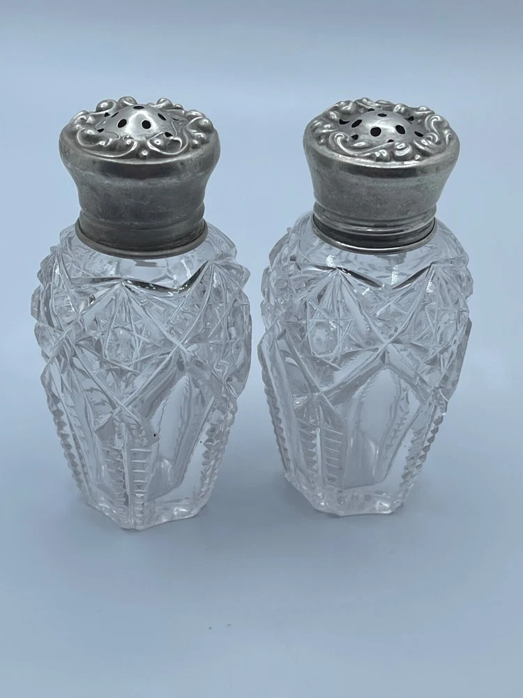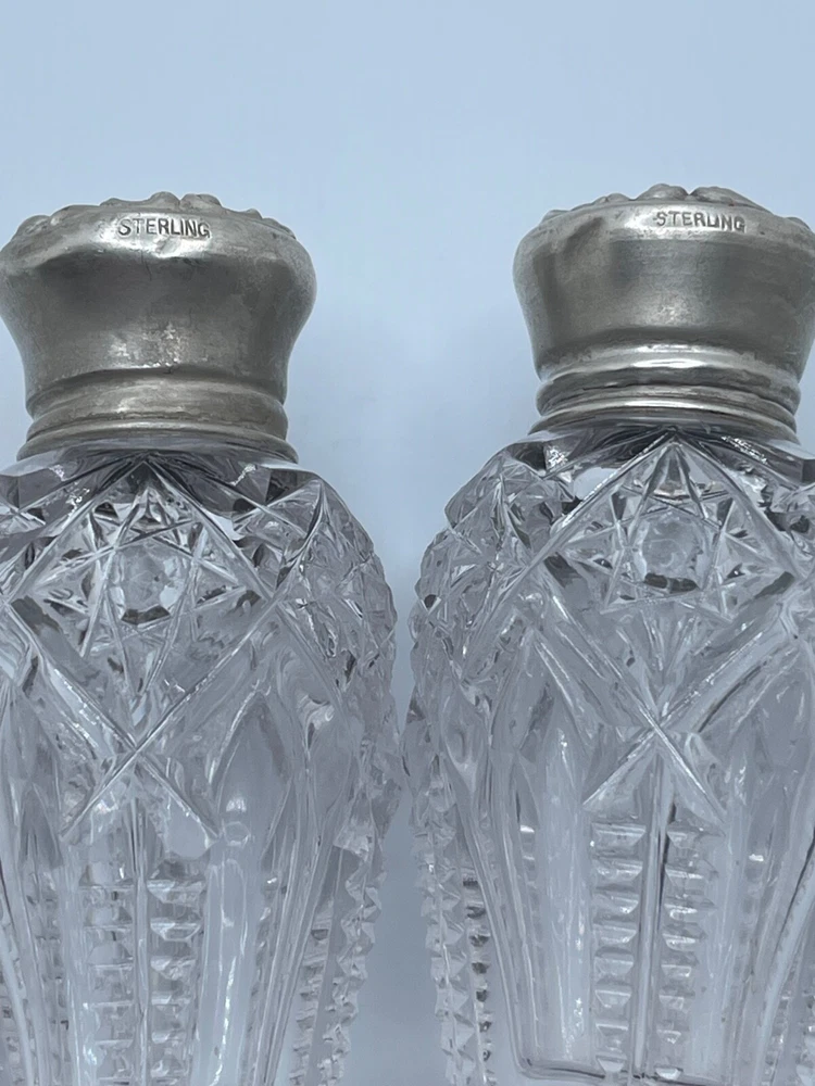 The Hawkes ABP Cut Crystal Sterling Salt & Pepper Shakers feature a design from the American Classic pattern, showcasing intricate cut crystal paired with Sterling Silver (.925) tops. Dating back to the period between 1876-1920, these antique shakers bear the Hawkes brand, known for their high-quality glassware and silver pieces. Perfect for adding a touch of elegance to any dining table, these shakers are a blend of beauty and functionality, making them a timeless addition to any collection.