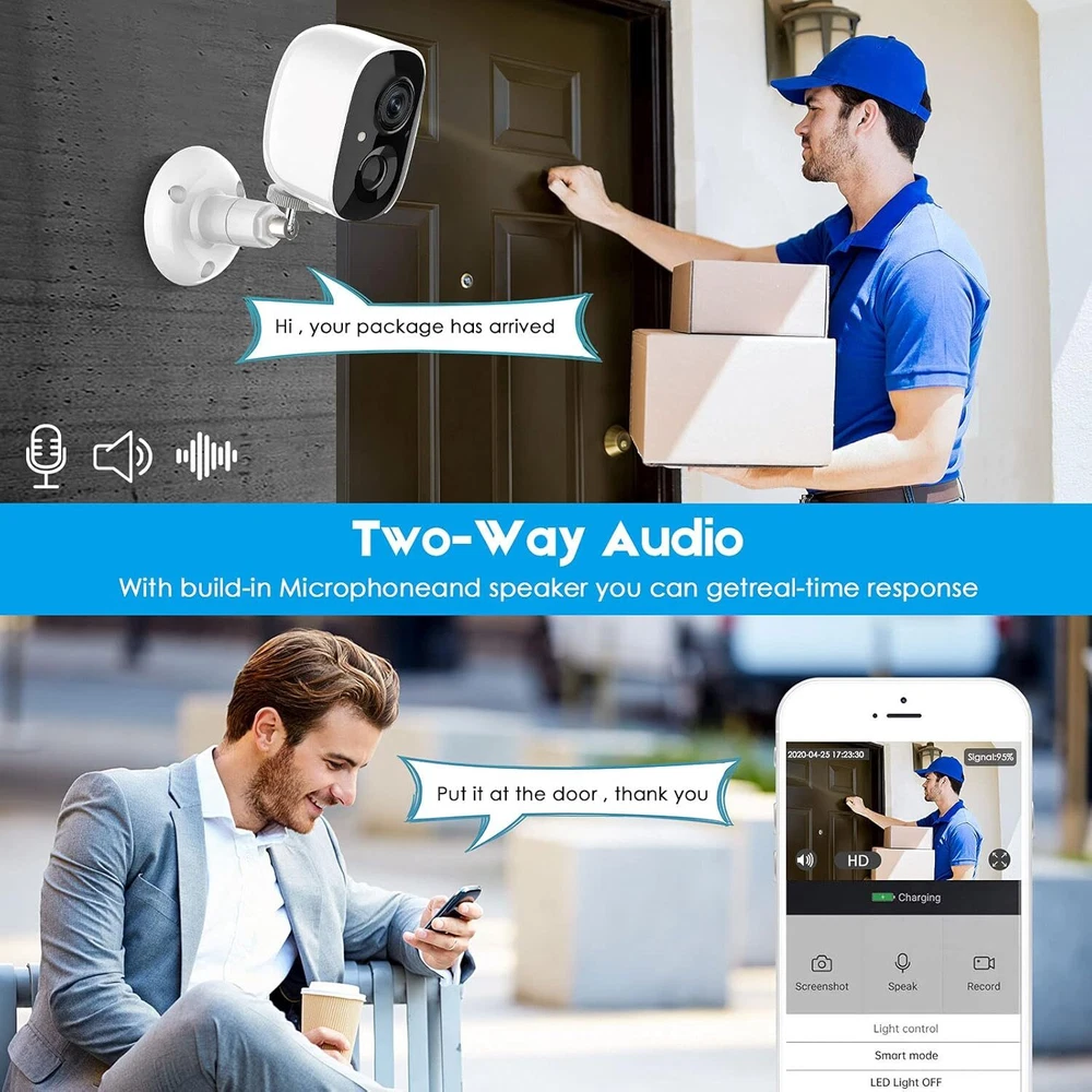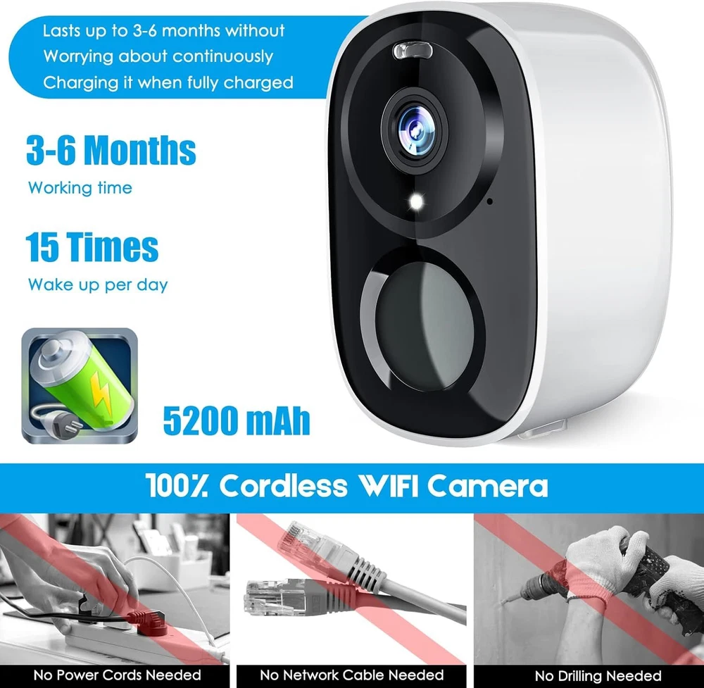 Hawkray Cam Wireless Outdoor Security Camera with Spotlight, 1080P Battery Powered WiFi Surveillance Cameras for Home System, Night Vision, Motion Detection, 2-Way-Talk, IP65 Weatherproof…, Grey Product Details Indoor/Outdoor Usage: Indoor Compatible Devices: Desktop Power Source: Battery Powered Connectivity Protocol: Wi-Fi Controller Type: Android Mounting Type: Wall Mount Video Capture Resolution: 1296p Number of Items: 1 Included Components: camera Number of Channels: 2 Wireless Communication Technology: Wi-Fi Effective Video Resolution: 1 Item dimensions L x W x H: 5 x 4 x 3 inches Batteries Required?: Yes Item Weight: 0.5 Pounds Alert Type: Motion Only Room Type: Garage Video Capture Format: MP4 Unit Count: 1.0 Count International Protection Rating: IP65 Product Dimensions: 5 x 4 x 3 inches Item Weight: 8 ounces Item model number: BW6 Batteries: 1 Lithium Ion batteries required. (included) Manufacturer: Shenzhen Hanwei Intelligent Technology Co Recommended Uses For Product: Indoor Security Brand: okicoler Model Name: BW6 Connectivity Technology: Wireless Special Feature: 2-Way Audio 【PIR Motion Detection & AI Recognition】: The wireless battery WiFi security cameras with advanced AI technology, can distinguish humans, pets, and vehicles based on the monitoring target you set in VicoHome App, and send you notifications that really matter. Upgraded PIR sensor sends you real-time alerts when motion is detected so that you don't have to constantly check the app. 【100% Wireless Rechargeable Battery & Long Standby】:It is a rechargeable battery-operated wire-free camera, so you don't need a power cord or network cable. Support 2.4GHz wifi only.5200mAh batteries give up to 3-6 months battery life on a single charge. The camera can be installed almost anywhere, such as a shop, home, garage, yard, outdoor/indoor. A wireless outdoor security camera is designed to resist extreme harsh weather, thus has a longer life. 【1080P HD Live Video and Color Night Vision】: Watch your home in true 1080p Full HD day and night, and see up to 65ft away in the dark. Videos can be viewed anywhere anytime from iOS or Android mobile devices. This security camera delivers full-color videos even after sundown. You can see more valuable details to identify people, vehicles, and more objects around the clock. 【2-way Audio & Multi-User Sharing】:The security camera has a built-in microphone and speaker and supports real-time two-way audio calls. You can use the APP to warn thieves, block visitors to the door, or directly communicate with family or friends. The wireless security camera can share with another phone, support device sharing up to everyone, just let the invitee download Vicohome App and scan the QR code. 【Waterproof IP65 & Cloud Storage】:This outdoor security camera wireless has IP65 waterproof protection has been tested to endure extreme weather conditions. Daring to use outdoors in rain, hail, storm, snow, and sun. Hawkray Cam Wireless Outdoor Security Camera with Spotlight, 1080P Battery Powered WiFi Surveillance Cameras for Home System, Night Vision, Motion Detection, 2-Way-Talk, IP65 Weatherproof…, Grey