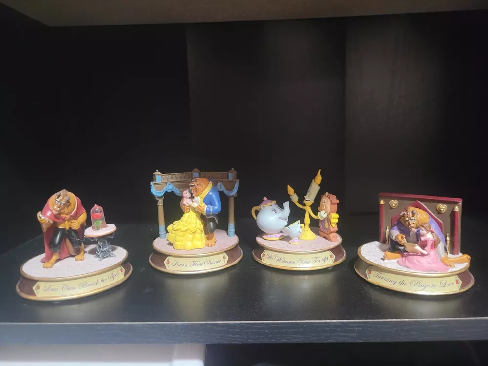 This exquisite Hawthorn Village Disney Power of True Love collection is a must-have for any fan of Beauty and the Beast. The collection features Belle and the Beast in various poses, capturing their timeless romance. Each figurine is crafted with attention to detail and is expertly painted to bring out the characters' true essence. The 4 pieces are not a matched set and Lumiere has a small crack in one arm. So, the arm moves (it shouldn't) but it is still attached. A dab of superglue would stop the movement completely.