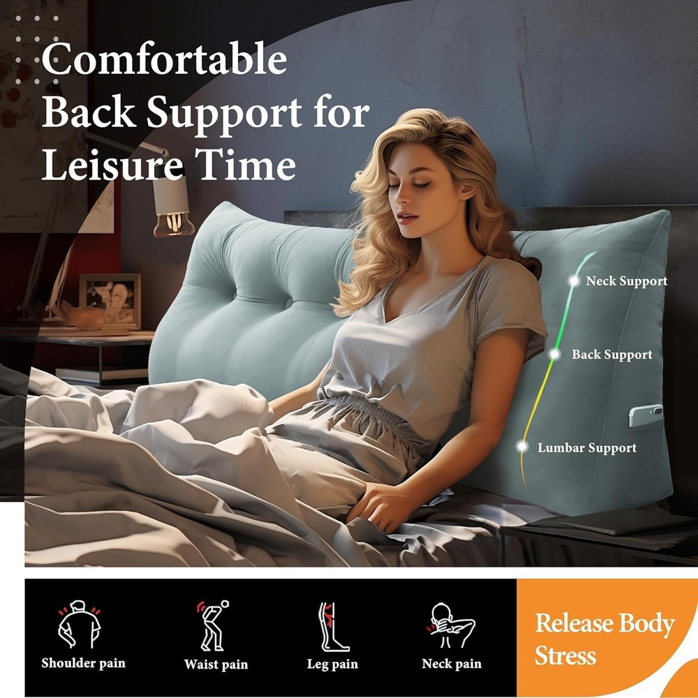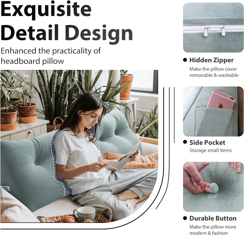 Our Triangle Pillow is perfect for different uses, and its triangular design allows you to to suit your comfort needs and to maintain proper posture, preventing any negative effects on your health. Whether it's for reading, watching TV, or lounging in bed, our pillow will keep you comfortable and relaxed, ensuring maximum coziness and restfulness. Our pillow features a removable, machine-washable cover that is easy to clean, ensuring that the pillow stays fresh and hygienic over time. One of the unique features that set our triangle headboard pillow apart is its pocket design on the side, making it convenient for keeping small items like your phone, remote or tablet within easy reach so you can enjoy your favorite shows or read your book without having to get up or hold onto the items. Our Triangle Pillow is also vacuum-compressed, Once you receive your pillow, just open the package and witness the magic of the pillow expanding back to its original shape and providing the comfortable support that you deserve. In summary, if you’ve been searching for a comfortable, supportive, and versatile pillow, our Triangle Pillow might just be the perfect solution. With its premium quality materials, unique pocket design, easy-to-use removable cover, and excellent customer service, it's a must-have for anyone who desires pure comfort and relaxation. Order yours today and experience the difference of superior comfort and support. The reading pillow is Crafted from high-quality fabric and filled with premium polyester fibers, not only soft to the touch of the back, but also adds a chic and sophisticated look to bedroom or living room. The unique triangle shape reading pillow is ideal for offering extra support while sitting upright, making it perfect for reading, lounging, or watching TV in comfort. Polyester fiber filling is specially developed to provide the ideal level of support and softness for your head and neck. Experience ultimate comfort and support with our headboard pillow. Designed with a unique triangular bed wedge shape headboard pillow, this Headboard Pillow provides essential support to your head, neck, back, and shoulders. Whether you're reading, lounging, or watching TV in bed, this bolster Pillow will provide the perfect support needed to sit up straight in comfort. The bed wedge pillow is ideal for various uses such as a lumbar support pillow or headrest while watching TV, reading, or writing. its modern design is perfect for a minimalist or modern-themed interior, but it can also complement a bustling room's decor. Whether it's on your bed, couch, or daybed, it adds a touch of flair without sacrificing comfort and support. Our Back Pillow is designed with your needs in mind and packed with features to enhance your comfort. One of the unique features of our bed wedge pillow is its invisible zipper cover, which can be easily removed for cleaning and keeping it fresh. This zipper cover also adds a sense of elegance to the overall design of the pillow, providing an additional touch of style. The pocket design on the side enhances the pillow's versatility and convenience. FILLING AFTER THE ORDER. All the reading pillows are filled and shipped by our warehouse AFTER you place the order, which ensures a shorter compression time period, keep the quality and shape of the product to you.