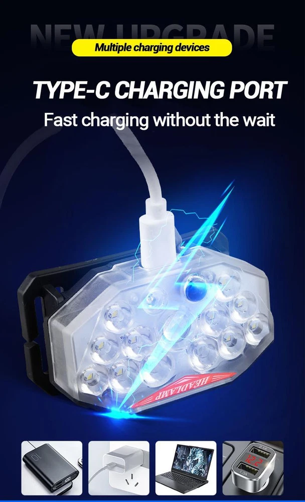 Free and fast shipping , shipping take up 1-7 Business Days 30 Day Return Accepted EASY PAYMENT via PayPal, Credit Card, PayPal Credit, Google Pay... Headlamp USB Type-c Rechargeable LED Battery Waterproof Plastic Multicolor Specification Product Name: Strong Light Sensing Headlight Product light source: 11 * LED+2 * red LED Using battery: built-in polymer battery(800 mah) Endurance: 2-8 hours Switch position: 7-speed lighting mode Charging method: TYPE-C intelligent fast charging Product weight: 60g (bare lamp/battery included) Waterproof performance: Lifestyle waterproof Lightly touch the switch for 4th gear dimming; Single lamp strong light (inductive) Single light weak light (inductive) 10 strong lights (inductive) 11 strong lights (inductive) Long press to switch light source (3rd gear dimming) Long bright red light Alternating flicker Sos INTELLIGENT SENSOR YOU CAN CONTROL THE HEADLAMPONIOFF BY WAVING 10-15CMSENSING DISTANCEALL GEARS CAN BE SENSED REVIEWS The product came very well packaged. I'm very happy. thank you for everything. Seller strongly recommended. This is great! I definitely recommend! Product looks amazing Delivery was fast. Excellent seller, great communication. I advise everyone to buy it!