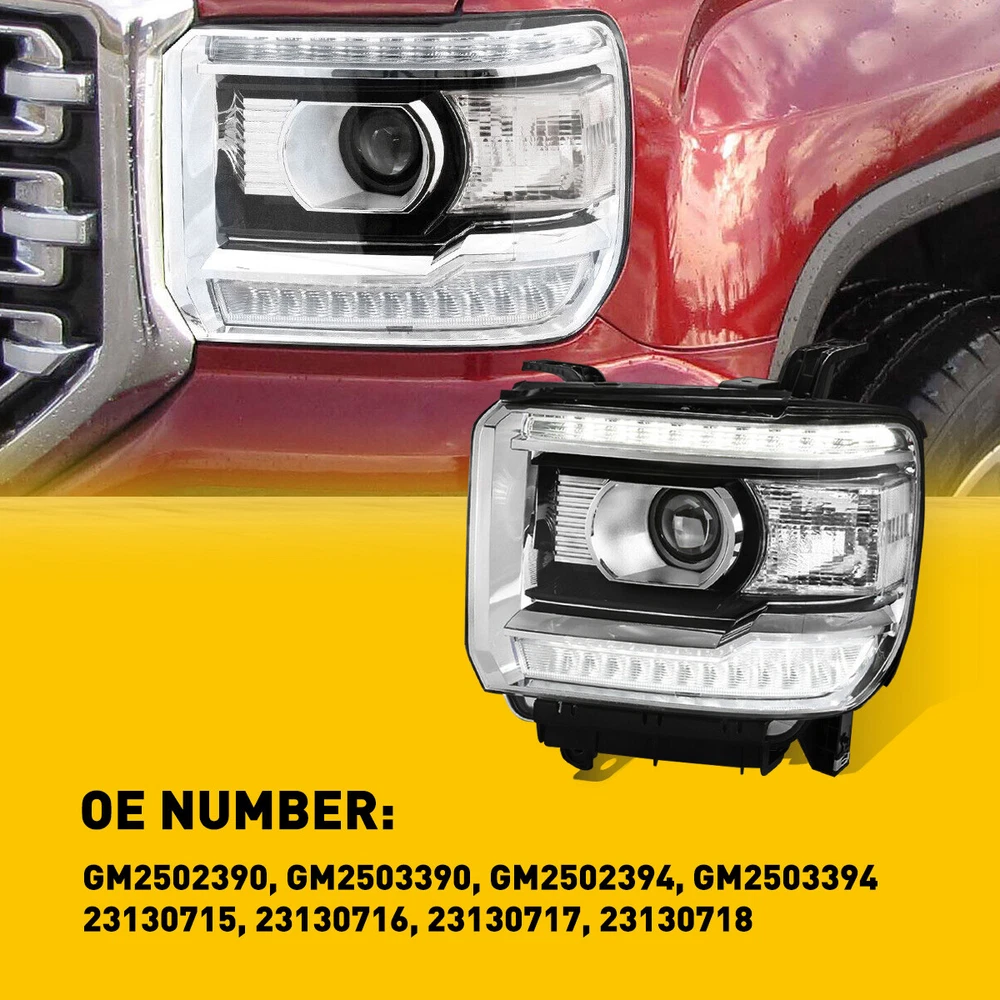 Projector Headlights Headlamps Fit For 2014-2019 GMC Sierra 1500 2500HD 3500HD Base Fit for: 2014-2018 GMC Sierra 1500 Base / Denali / SLE / SLT models only 2015-2019 GMC Sierra 2500HD Base / Denali / SLE / SLT models only 2015-2019 GMC Sierra 3500HD Base / Denali / SLE / SLT models only (compatible models with factory LED daytime running lights) (Does not compatible models with 2014 classic body style) (For models with factory non-LEDs lights headlights: This headlights will light up the bottom LEDs only by manually turn on the parking lights; the top LEDs will not turn on) Headlight Set FOR 2014-2018 Sierra GMC 1500 2015-2019 Sierra 2500 HD 3500 HD Projector Headlights Headlamps Fit For 2014-2019 GMC Sierra 1500 2500HD 3500HD Base Fit for: 2014-2018 GMC Sierra 1500 Base / Denali / SLE / SLT models only 2015-2019 GMC Sierra 2500HD Base / Denali / SLE / SLT models only 2015-2019 GMC Sierra 3500HD Base / Denali / SLE / SLT models only (compatible models with factory LED daytime running lights) (Does not compatible models with 2014 classic body style) (For models with factory non-LEDs lights headlights: This headlights will light up the bottom LEDs only by manually turn on the parking lights; the top LEDs will not turn on) (Fits models with factory halogen headlights only; Does Not fit models with factory Xenon HID headlights) Specifications: OE number: GM2502390, GM2503390, GM2502394, GM2503394 23130715, 23130716, 23130717, 23130718 Material: ABS+PC (ABS Plastic Housing/Polycarbonate lens) Appearance color: 1.Housing Color: Black 2.Lens Color:Clear 3.Reflector Color:White Note: Projector √(Include) DRL √ (Include) Bulbs × (Not include) Features: *Easy to install: Direct replacement, drilling and cutting are not required. *Superior quality: Made of ABS and PC materials with toughness and heat resistance functions to ensure its long service life and durability. *Angle adjustment: Equipped with a headlamp Angle adjustment knob, you can adjust the best Angle of view through the knob. *Suggestion: 1.Please confirm the OE number before purchasing!!! 2.Professional installation is required!!! Packaging include: Headlights*2(Left+Right) Item Specifics Brand AUXITO Manufacturer Warranty 5 Year Housing Color Chrome Placement on Vehicle Housing ColorLeft, Right, Front Lens Color Clear Bulb Shape Code Use Stock Bulbs Interchange Part Number GM2502390, GM2503390, GM2502394, GM2503394 Package Includes Driver & Passenger Side Headlights Bulbs Included No Material ABS Plastic, Polycarbonate Lens Certifications DOT, SAE Fitment1 2014-2018 GMC Sierra 1500 Base / Denali / SLE / SLT models only Fitment2 2015-2019 GMC Sierra 2500HD Base / Denali / SLE / SLT models only Fitment3 2015-2019 GMC Sierra 3500HD Base / Denali / SLE / SLT models only Number of Bulbs 0 Fitment Type Performance/Custom Type Headlight Assembly Features Reflector Housing, Projector Housing, Facelift Headlight OE/OEM Part Number GM2502390, GM2503390, GM2502394, GM2503394 OE/OEM Part Number GM2502390, GM2503390, GM2502394, GM2503394 Payment 1. We can only accept payment from PayPal. 2. Please keep the consistency of Paypal address and ebay address. Shipping 1. All items will be shipped in 12 hours after receiving your payment . 2. We ship this item to US only via USPS first class mail. It usually takes 3-5 working days to deliver. Returns 1. We offer 30 days return policy. 2. Please contact us within 30 days from the date you receive your package if you have any questions with the products . 3. Refund will be sent after we got your returned package. 4. All returned items should be in the original packaging with tracking number. Contact Us We work from Monday - Saturday 9:00AM - 6:00PM, but we will reply once we get your message. There will be delay on response if you send message or E-Mail on Sunday. DESCRIPTION PAYMENT SHIPPING RETURN POLICY CONTACT US Shop Category Store Home Other Hot Item Set of Delco 4 AC Oxygen O2 for Sensor 2003-2005 Cadillac Chevrolet GMC V8 5.3L USD 50.99 For 2002-2008 Dodge Chrysler Stereo Car Radio Wiring Harness Adapter USD 11.59 Door Latch Cables LH+RH Front For 2007-2013 Chevy Silverado 1500 2500 HD 3500 HD USD 17.99 Rear Left or Right Outside Door Handle for 2010-2016 Toyota 4Runner Lexus GX460 USD 14.99 Universal Car Windshield Wiper Squirter Washer Nozzle Spray Jet Kit Fluid Hose T USD 9.99 New List Item 12597567 EVAP Emisson Canister Vapor Purge Solenoid Valve fits Chevy Buick GMC USD 14.99 New Seat Recliner Adjustment Lever Handle Driver Side LH For 07-14 Chevy GMC USA USD 10.99 1 REPLACEMENT FOR FORD 2014-2019 FIESTA CAR FOG LAMP COVER BLACK LEFT WATERPROOF USD 14.99 AUXITO H4 9003 Super White 24000LM Kit LED Headlight Bulb High Low Beam Fog Lamp USD 52.99 8 Carbon Fiber Car Door Handle Door Bowl Cup Protector Film Anti-Scratch Sticker USD 11.99 Excellent Delivery Headlight Set FOR 2014-2018 Sierra GMC 1500 2015-2019 Sierra 2500 HD 3500 HD Projector Headlights Headlamps Fit For 2014-2019 GMC Sierra 1500 2500HD 3500HD Base Fit for: 2014-2018 GMC Sierra 1500 Base / Denali / SLE / SLT models only 2015-2019 GMC Sierra 2500HD Base / Denali / SLE / SLT models only 2015-2019 GMC Sierra 3500HD Base / Denali / SLE / SLT models only (compatible models with factory LED daytime running lights) (Does not compatible models with 2014 classic body style) (For models with factory non-LEDs lights headlights: This headlights will light up the bottom LEDs only by manually turn on the parking lights; the top LEDs will not turn on) (Fits models with factory halogen headlights only; Does Not fit models with factory Xenon HID headlights) Specifications: OE number: GM2502390, GM2503390, GM2502394, GM2503394 23130715, 23130716, 23130717, 23130718 Material: ABS+PC (ABS Plastic Housing/Polycarbonate lens) Appearance color: 1.Housing Color: Black 2.Lens Color:Clear 3.Reflector Color:White Note: Projector √(Include) DRL √ (Include) Bulbs × (Not include) Features: *Easy to install: Direct replacement, drilling and cutting ar