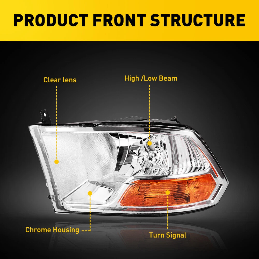 Fit for: 2009-2012 Dodge Ram 1500 2010-2012 Dodge Ram 2500 3500 Compatible with Dual Beam Models Not Compatible with Factory Projector Headlight Models or Quad Beam Headlight Models Specifications: OE number: 55277409AD,55277409AF,55277409AG,5277409AD CH2502217,CH2503217 2221-0090L,2221-0090R Material: ABS+PC (ABS Plastic Housing/Polycarbonate lens) Appearance color: 1.Housing Color: Chrome 2.Lens Color??Clear 3.Reflector Color??Amber The bulb type of original car: 1.Low beam: H13 2.High beam: H13 3.Turn signal light: 3157A Note: Headlights Headlamps Chrome Dodge Housing Pair for Ram 2009-2018 1500 2500 EXA Fit for: 2009-2012 Dodge Ram 1500 2010-2012 Dodge Ram 2500 3500 Compatible with Dual Beam Models Not Compatible with Factory Projector Headlight Models or Quad Beam Headlight Models Specifications: OE number: 55277409AD,55277409AF,55277409AG,5277409AD CH2502217,CH2503217 2221-0090L,2221-0090R Material: ABS+PC (ABS Plastic Housing/Polycarbonate lens) Appearance color: 1.Housing Color: Chrome 2.Lens Color??Clear 3.Reflector Color??Amber The bulb type of original car: 1.Low beam: H13 2.High beam: H13 3.Turn signal light: 3157A Note: Projector ×??Not include?? DRL × (Not include) Bulb × (Not include) Features: *Easy to install: Direct replacement, drilling and cutting are not required. *Superior quality: Made of ABS and PC materials with toughness and heat resistance functions to ensure its long service life and durability. *Angle adjustment: Equipped with a headlamp Angle adjustment knob, you can adjust the best Angle of view through the knob. *Suggestion: 1.Please confirm the OE number before purchasing!!! 2.Professional installation is required!!! Packaging include: Headlights*2(Left+Right) Item Specifics Brand AUXITO Lighting Technology Halogen Type Headlight Assembly Features Custom Headlights Factory Headlights Halo Headlights Housing Color Chrome (Crystal) Placement on Vehicle Front Left Right Lens Color Clear Bulb Shape Code H13 (9008) Manufacturer Part Number Does Not Apply OE/OEM Part Number 55277409AD,55277409AF,55277409AG,5277409AD,5527740 Interchange Part Number 2221-0090L,2221-0090R Manufacturer Warranty 5 Year California Prop 65 Warning This product can expose you tochemicals including dehp, which are known to the State of California to cause cancer and birth defects or other reproductive harm. Headlight Style Factory Fitment Type Direct Replacement Other Part Number CH2502217,CH2503217 High&Low Beam Bulb Type H13(Bulbs are not included) Fitment ① For 2009-2012 Dodge Ram 1500 Fitment ② For 2010-2012 Dodge Ram 2500 3500 Note 1 Compatible w/ Dual Beam Models Note 2 Not Compatible w/ Factory Projector Headlight Models Note 3 Not Compatible w/ Quad Beam Headlight Models Universal Fitment No Payment We only accept PayPal payment, should be received within 3 days from the date of purchase. Please keep the consistency of Paypal address and ebay address. Payment should be made within 4 days once you won a item ,or ebay will launch Unpaid Reminder agaist you and there will be bad record on your ebay account . Buyers are responsible for import duties, custom fees and taxes.Please check with your country's custom office to determine the additional costs before you finally make the purchase Shipping All items will be shipped in 48 hours after receiving your payment . We ship this item to US only via USPS first class mail. It usually takes 3-6 working days to deliver. Returns We offer 30 days return policy. Please contact us within 30 days t from the date you receive your order if you have any issues with the product or want return .Refund will be send after we got your resend package. All returned items should be in the original packaging , return tracking information should be provided .. Buyer is responsible for return shipping cost due to the problem not caused by item quality itself . Contact Us Our office hours are MONDAY - FRIDAY 9:00PM - 6:00PM PST, but we will response you once we get your message .There will be some delay on response if you send message or E-Mail on weekend. FAQ Q1: Will this bulb fit my vehicle? A: We can match almost any vehicle to one of our bulb sizes. eBay only lets us include partial vehicle fitments per listing, but if your vehicle does not show up on the compatibility table at the top of our listings, welcome you to contact us for free consulation before purchasing a product. Q2: My item has not arrived, what's taking so long? A: Sometimes items take longer than expected, especially if it’s going far or to rural area. Check with your post office to see if your item has been held up. Sometimes USPS will not update a tracking number until it has arrived at its destination. If your item still has not arrived after a few days, let us know so we can double check for you and help solve it asap. Q3: Do I need to mention the Year, Make and Model in the notes when place order? A: YES. Please include the Year, Make, and Model in the notes section during checkout to ensure you receive everything needed for your kit! Q4: My bulbs won't fit, help! A: Special bulb holder may be required. See if you can take the holder from the stock bulb. If not, let us know. The bulb size may be wrong, double check the item you received with the item you ordered. Do you have an aftermarket lighting housing? These may not be perfectly fitted for aftermarket bulbs and will require some manual modifications. Q5: Neither side lighting up? Both sides flicker, flash, or work inconsistantly. A:Check the headlight fuses, and then check the ballast plugs to insure correct installation. If this doesn't work, there may be a voltage problem with the vehicle. You probably just need a relay or capacitor. Q6: WARNING ABOUT POLARITY Unlike halogen bulbs, LED are polarity sensitive. BEFORE you start your LED kit installation, verify the polarity on your vehicle by simply plugging the LED bulb into your vehicle socket. - if your light turns on, please proceed to install both bulbs onto your