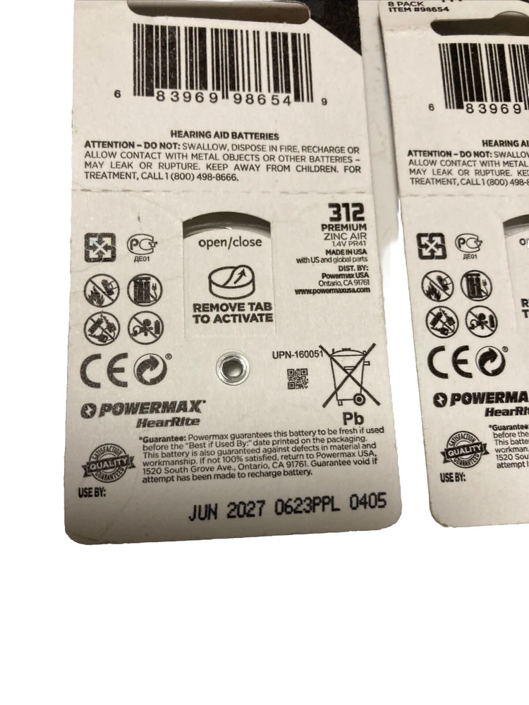 This hearing aid battery is the perfect replacement for your PowerMax model 312 battery. With an expiration date of June 2027, you can be assured of its long-lasting use. This coin cell/button battery has a voltage of 1.4v and an amp hours of 1 Ah, making it suitable for low drain devices. The battery is made of zinc-air chemical composition and comes in a unit quantity of 2. Manufactured in the United States, this battery is reliable and durable. Additionally, it comes with a 1-year manufacturer warranty. Get your hands on this high-quality hearing aid battery and enjoy its benefits for a long time to come.