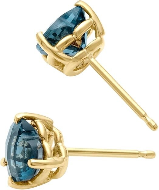 Heart Cut Simulated London Blue Topaz Unisex Christmas Stud in 14K Yellow Gold Plated
