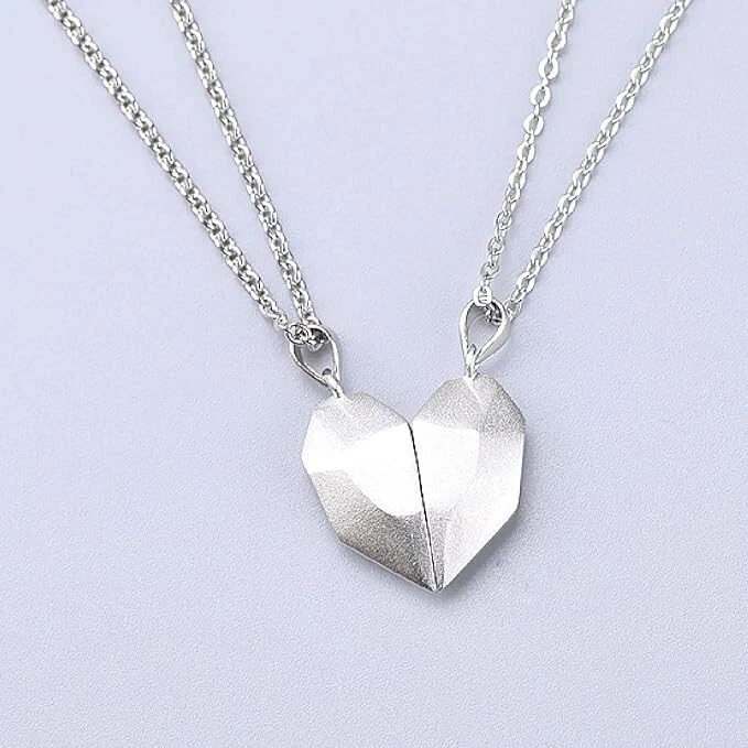 Heart Magnet Necklace Set for Couple - Silver w/ Silver, Great Gift, Anniversary Romantic Anniversary or Valentine\'s Day Gift