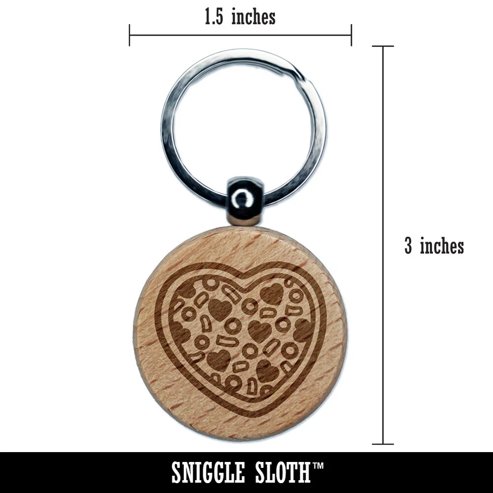Heart Pizza Love Engraved Wood Round Keychain Tag Charm