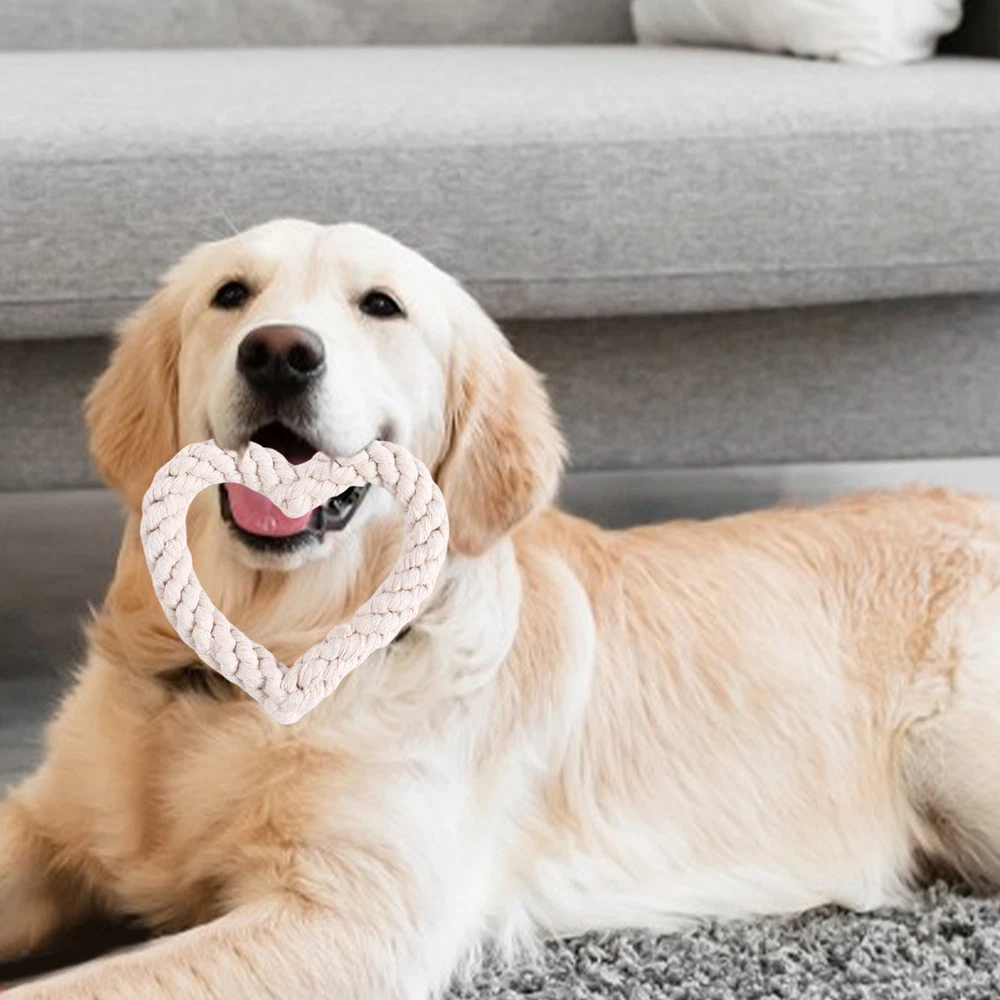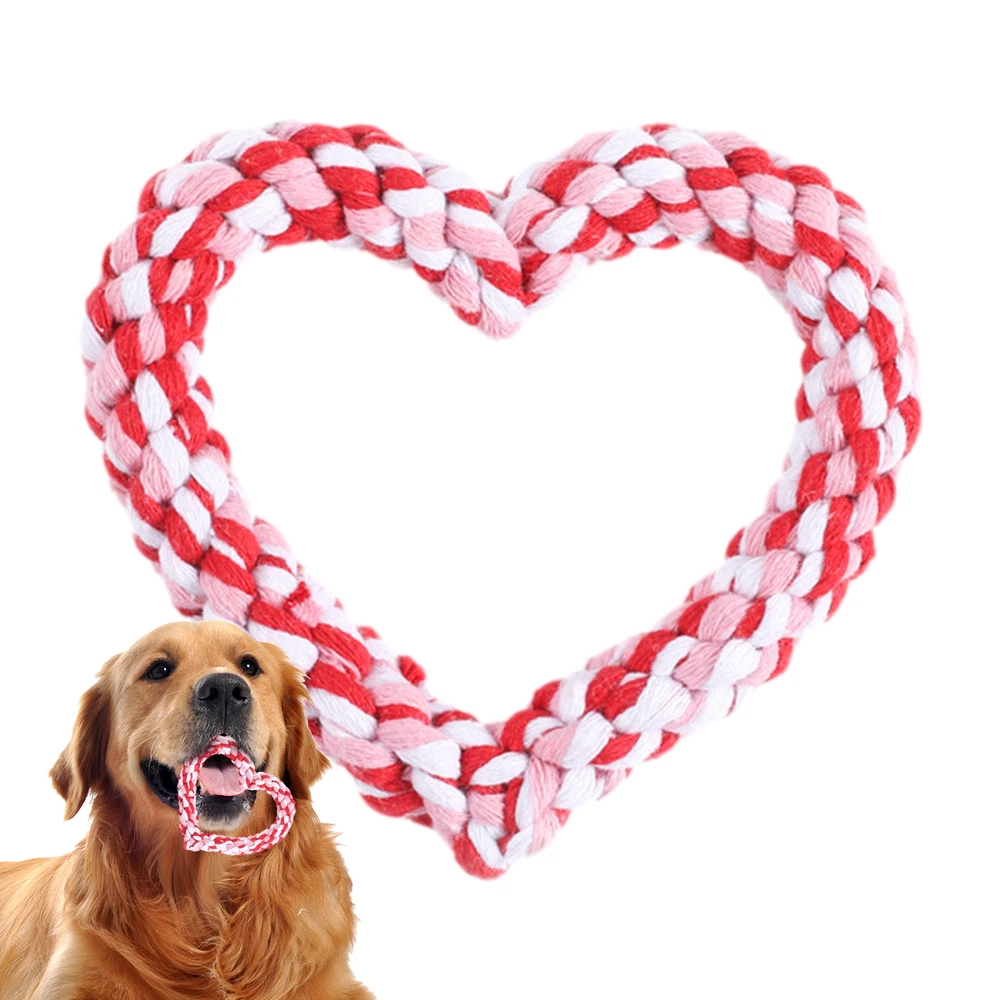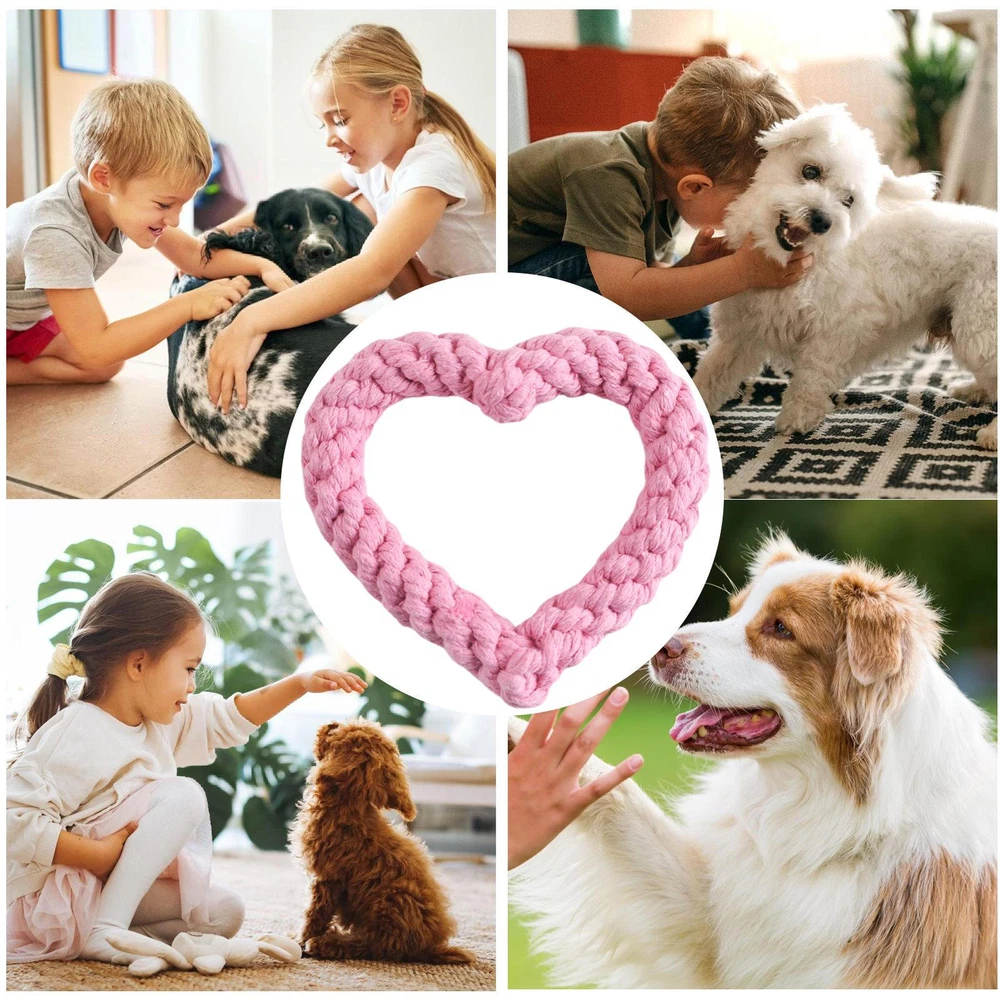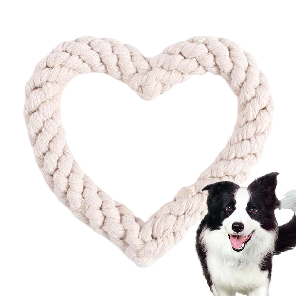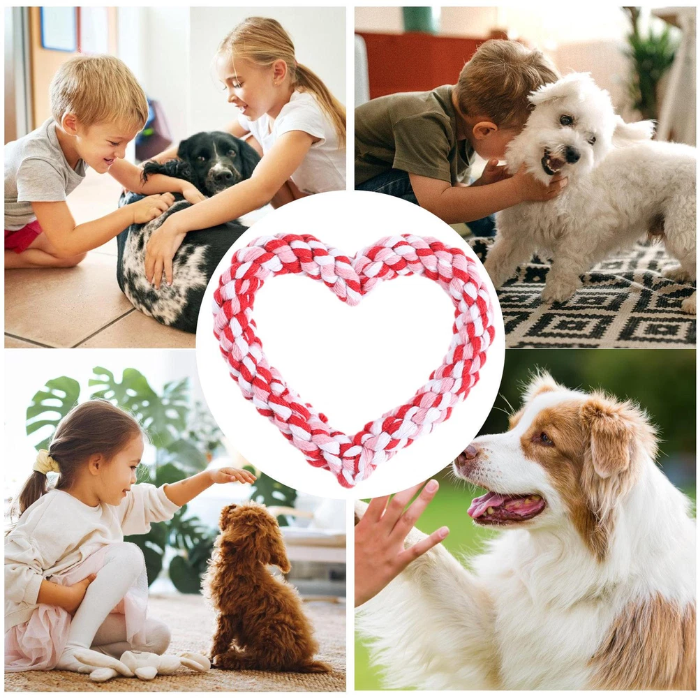 Heart Shape Dog Rope Chew Toy Cotton Rope Dog Toy Pet Small Puppy Fetch Fun
