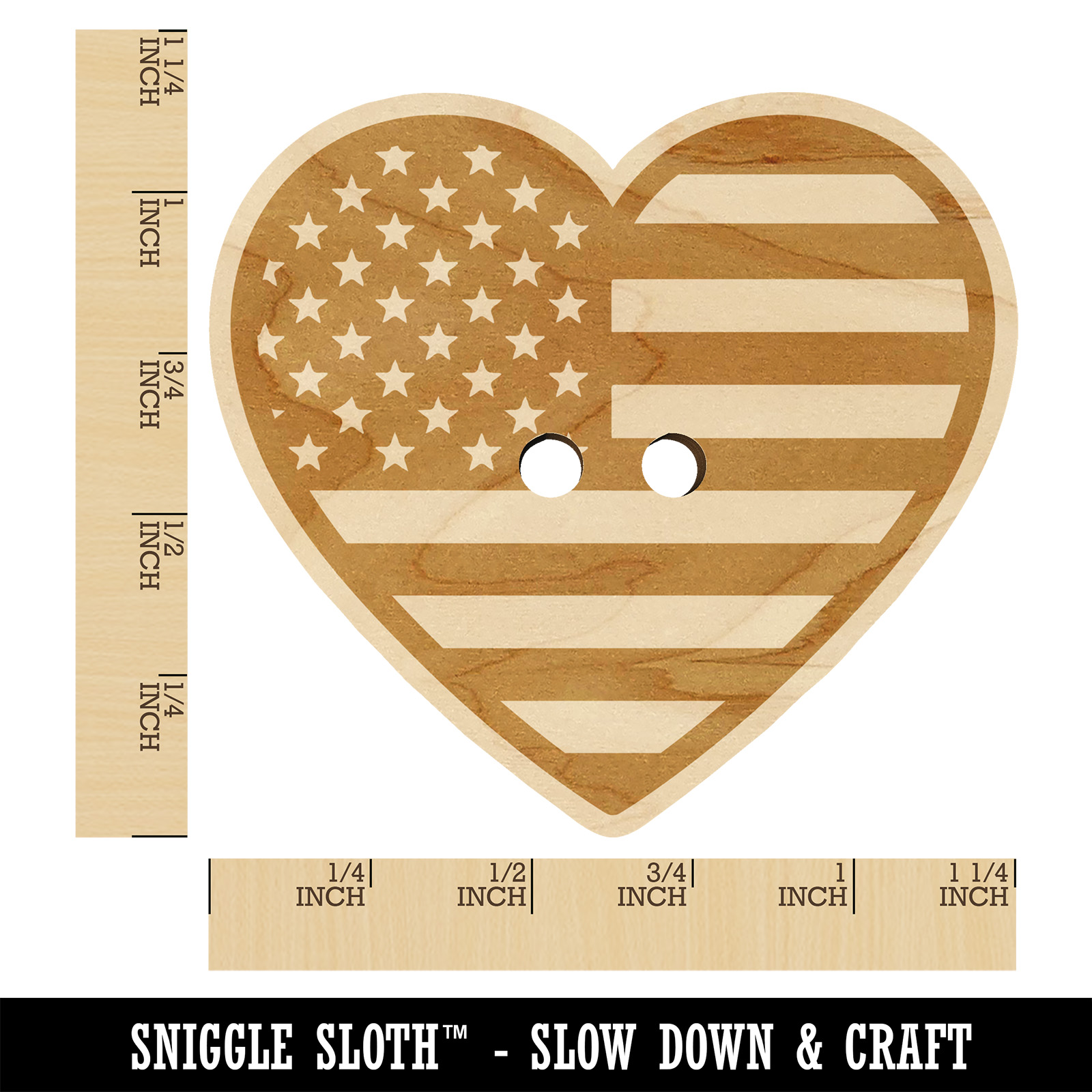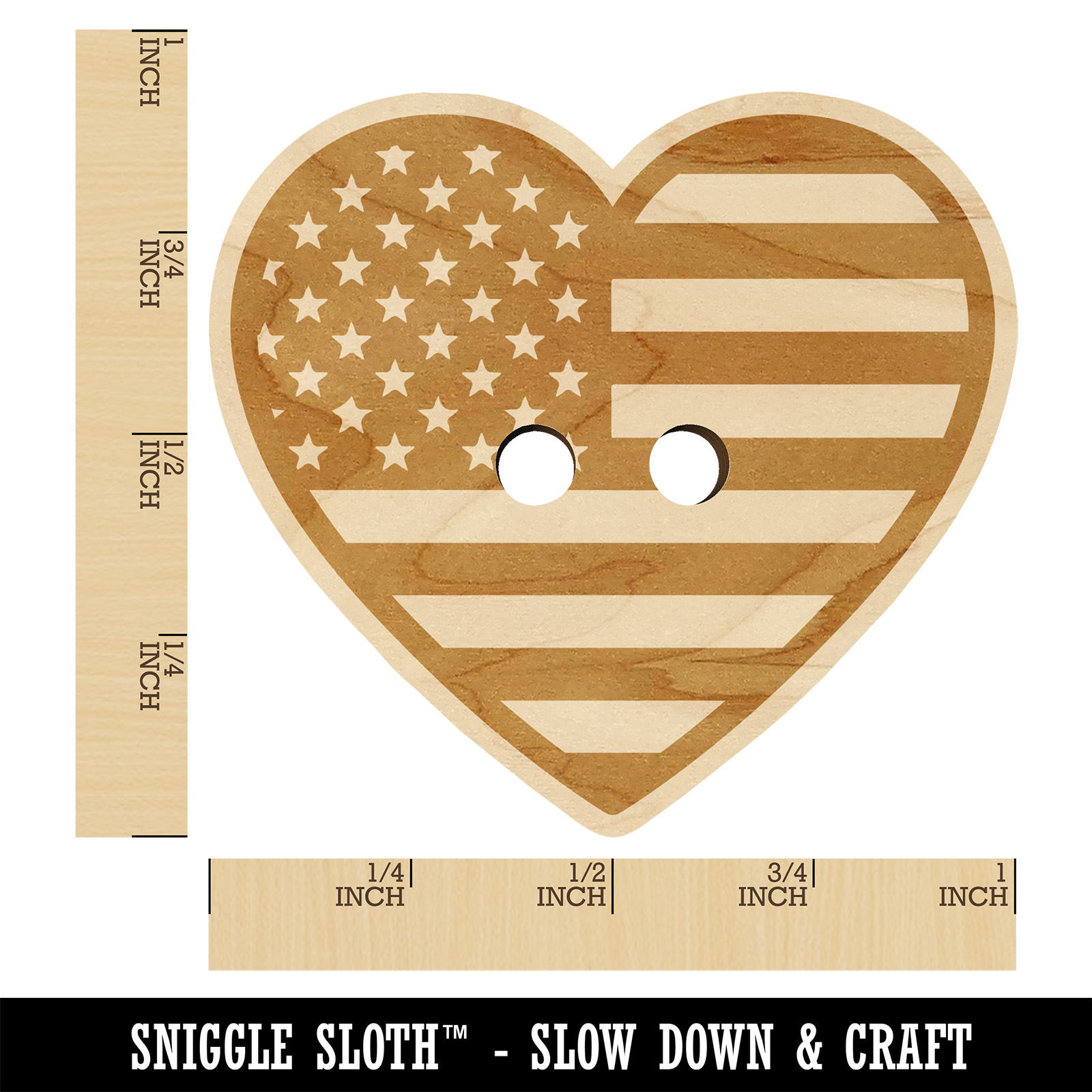Heart Shaped American Flag United States of America USA Wood Buttons for Sewing
