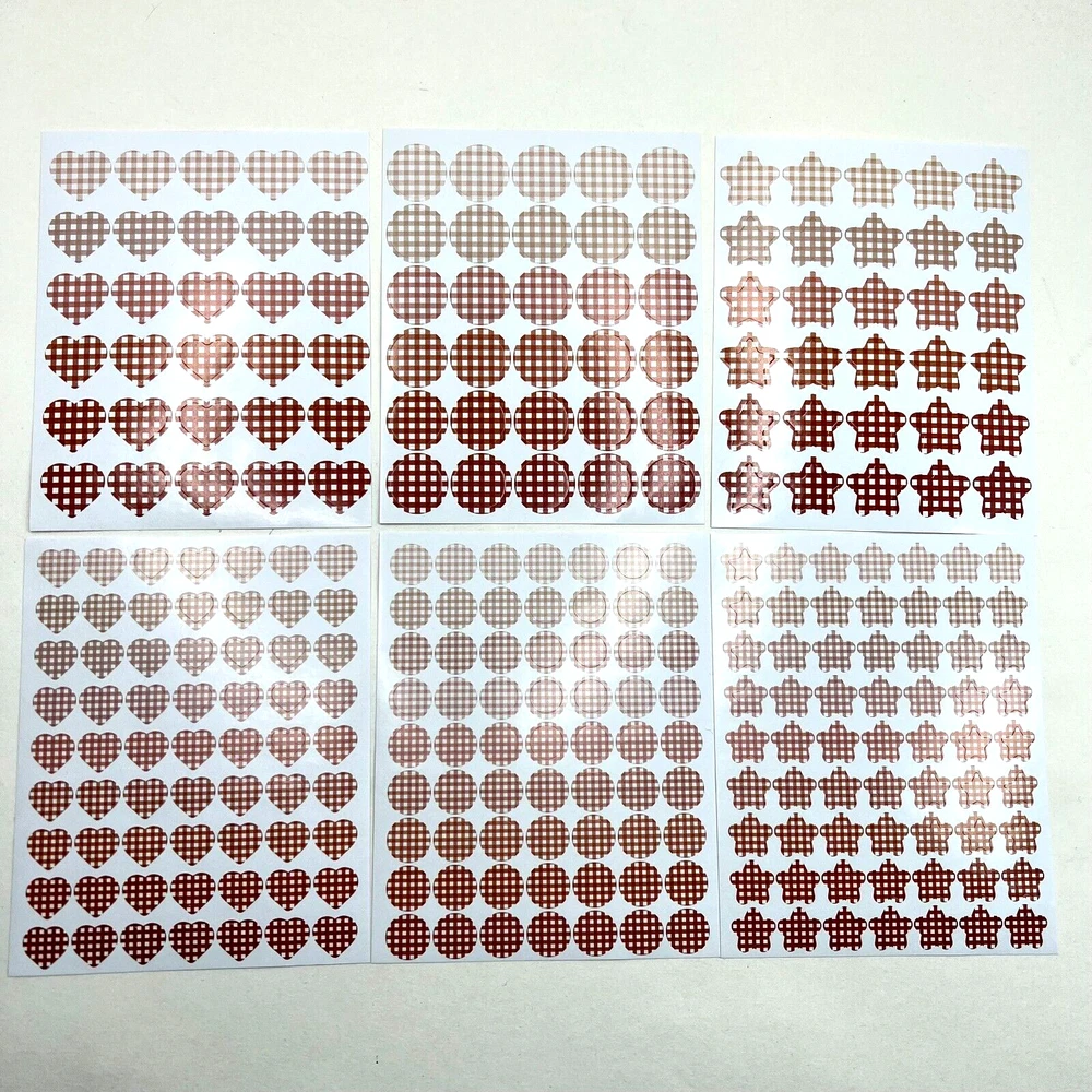 6 sheets. Hearts, stars and dots. Great size for planners and bullet journals. I have more stickers, washi tape and paper for sale. I do combine shipping. Please put all the items you would like to purchase in ONE cart and then pay. I will refund you the difference in postage after the shipping label is printed. Let me know if you have any questions through eBay messaging. Thank you for stopping by!