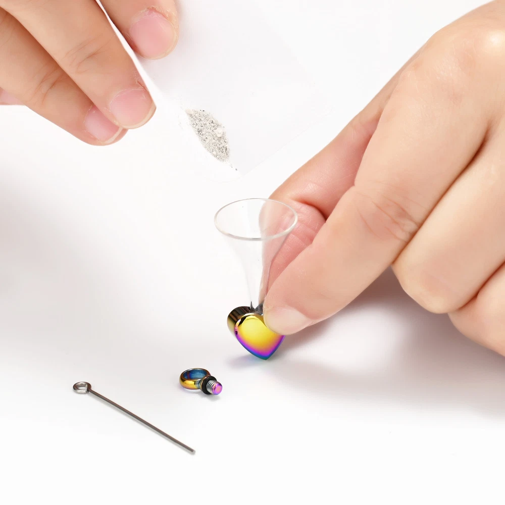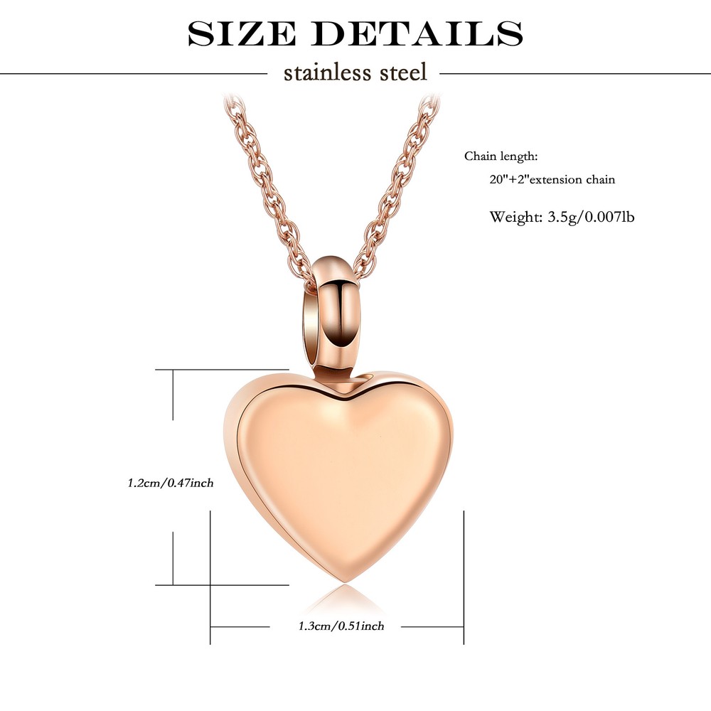 Product Description Hearbeingt Cremation Jewelry How do you capture the inspiration of a lifetime? It can be a formidable task. Yet that is the task faced by family and loved ones during their time of loss--to find a way to honor a life well lived with a dignified and appropriate memorial. Hearbeingt keepsake Necklace make you can keep your memories always near in your heart! You can place a pinch of ashes in the Necklace and keep them with you, everywhere! This Urn Necklace for Ashes Made of medical grade 316 L stainless steel, it is shiny, does not fade, will never rust, corrode or change color; screws and rubber washers can ensure a tight seal to prevent the ashes from falling.It can have two collocations, you can choose high quality rope or high quality 361L stainless steel chain. Cremation Jewelry Quality Made of High-Quality 316L Stainless Steel ,This memorial pendant is fadeless, no tarnish, hypoallergenic, waterproof and high polished; Kinds of plating colors can be chosen. Hand crafted Keepsake jewelry is used as a remarkable way to memorialize a loved one.Can keep your loved one with you together,bring you comfort.Handmade musical instruments necklaces, Cremation Jewelry, commemorative jewelry, casket necklaces, or ashes jewelry are used as a great way to honor loved ones. Mini Charm Keepsake Necklace Suitable for All Ages High-quality adjustable nylon cord for more comfortable wearing experience for both men, women, and children.The cremation necklace is designed to hold urn ashes for pets, a small amount of a loved one ashes, soil, special messages, hair, perfume, etc. Hearbeingt keepsake pendant make you can keep your memories always near in your heart! -You can place a pinch of ashes in the pendant and keep them with you, everywhere! -A bit of soil from your home town, your country or from a place you traveled to and you want it to stay with you forever! -A loving memory that it is worth staying always by your heart! -Your favorite fragrance which will carry you so many memories! -Can be hung in car back mirror so that you can be with your loved one wherever you go. Product Main Features: Material: High-quality 316L stainless steel Chain Length: 20''+2''(Selectable) Package: Including a urn necklace, a gift box, a funnel, screwdriver, and an instruction manual. Package & Service Including a beautiful gift box,filling kit and specification.If have any problems with the purchase, please let us know, we will give you a satisfactory solution. Service Pls contact us if you are not satisfied with the product when you received it, we will solve it. Easy to fill ashes 1. Open the pendant screw. 2. Pour the ashes into funnel,use the stainless steel pin guide the remains into the pendant. 3: Put the screws back on the pendant. Note: ( Recommend use glue to permanently seal the pendant,place a small drop of super glue on the threads before sealing).