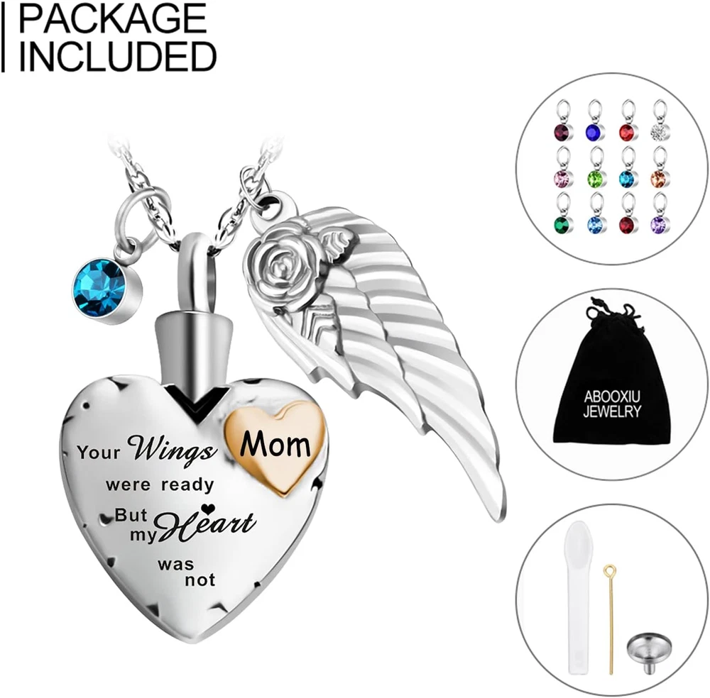 Store New Arrivals Add to Favorite View Feedback Contact Fast deliveries to the customer's home Quality customer service John Make the customers happy! Heart Urn Necklaces for Ashes with 12 Pcs Birthstones Cremation Necklace for Ashes Stainless Steel Cremation Jewelry - Your Wings Were Ready, but My Heart Was Not Description Item model number AB-DH-WING-PARENT Style Mom Metal stamp 316L Stainless Steel Chain Cable Gem Type stainless steel Material Stainless Steel Metal Stainless Steel Model number AB-DH-WING-MOM Setting Prong Department womens Number of stones 12 Clasp Lobster ABOUT US We offer the best prices around on high quality products. Our E-store includes media such as books, movies, music and games while offering electronics, toys, sporting apparel, clothing, tools, general home, garden items and more. SHIPPING We are always working hard to ensure your package arrives as soon as possible. Please understand that some factors like weather, high postal traffic, and the performance of shipping companies are outside of our control. We offer free shipping to the lower 48 states and ship within 2 business days of payment, usually sooner. We do not accept P.O. Boxes. Please provide a physical address. For shipping outside of the continental USA, we only use eBay's Global Shipping Program. The item is shipped to KY and then sent to the rest of the world. International customers are responsible for all duties and taxes. Continue to 'check out' to calculate costs for shipping the item to your country. Messages regarding eBay's Global Shipping Program MUST be directed at eBay EXCLUSIVELY. RETURNS We offer a 30-Day Return Policy on items in which you are not completely satisfied with. You have the option of a full-refund or an exchange of the item. No returns are available on items shipped outside of the USA PAYMENT We accept PayPal. CONTACT US This page content is yet to come Please ad us to your favorite seller and visit again later Thank You CUSTOMER SATISFACTION We try our very best to make sure every customer is completely satisfied. If there's a problem, message us! We're happy to help. WE ACCEPT