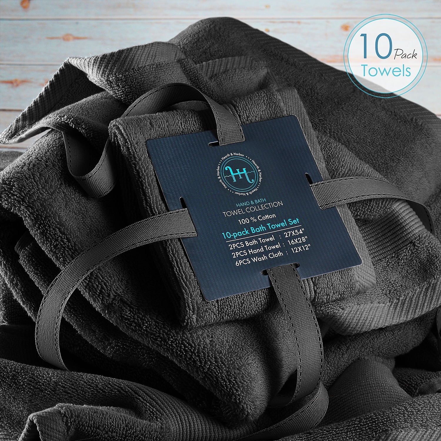 Transform your intimate space into a sanctuary of comfort and luxury with the Hearth & Harbor 100% combed ring-spun cotton towels, mats, and washcloths. Our Towel collection is made of premium quality cotton that has a luxurious feel and is exceptionally durable. These 700 GSM cotton towels, 600 GSM hand towels, and 500 GSM washcloths have a dense consistency and rich texture, which render them highly absorbent. These cotton towels will maintain their softness and color even after washing. Our towels are based on elegance, quality, and utility. These provide the perfect level of warmth and turn your relaxation into a breeze.Features:Premium high quality - 100% CottonUltra-dense consistency Hightly absorbentfade, stain, and shrink resistantMachine washable and wrinkle-freeavailable in 9 Free Shipping Over $49.99* Details Hearth & Harbor 100 Percent Cotton Ultra Soft and Absorbent Bath Towel Set Product Description: Transform your intimate space into a sanctuary of comfort and luxury with the Hearth & Harbor 100% combed ring-spun cotton towels, mats, and washcloths. Our Towel collection is made of premium quality cotton that has a luxurious feel and is exceptionally durable. These 700 GSM cotton towels, 600 GSM hand towels, and 500 GSM washcloths have a dense consistency and rich texture, which render them highly absorbent. These cotton towels will maintain their softness and color even after washing. Our towels are based on elegance, quality, and utility. These provide the perfect level of warmth and turn your relaxation into a breeze. Features: Premium high quality - 100% Cotton Ultra-dense consistency Hightly absorbent fade, stain, and shrink resistant Machine washable and wrinkle-free available in 9 gorgeous colors Includes: 10-piece set2 body towels, 2 hand towels and 6 washcloths. The body towels measure 27 x 54 inches, the hand towels 16 x 28 inches, and the washcloths 12 x 12 inches. 6-piece set4 body towels and 2 cotton washcloths. The body towels measure 27 x 54 inches, washcloths 12 x 12 inches. "At the heart of our creations is quality that ensures sustainability, for an experience that lasts longer remains unforgettable."