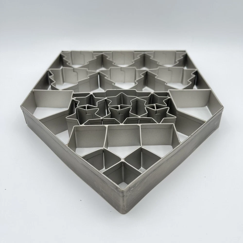 Hearth and Hand Magnolia 2019 Giant Multi-Cookie Cutter Sheet, Brushed Stainless. Each item is cleaned, sanitized and refurbished back to life. I do not leave them in found condition. I spend a lot of time restoring them as much as possible so that when the piece is received it can be given a light hand wash and is ready for use. Please look closely at photos before purchase and will answer any unclear condition issues by message. Shipping is calculated by weight and paid to the USPS. It is not my money to discount. Do not ask. NOTE: If damaged upon receiving package please provide multiple clear images of box condition, shipping label, packaging supplies and items damaged to receive a timely refund. Post office will require your return of damaged items to the post office for verification purposes. Your experience matters and I will do my best to resolve the problem. Thank you for your purchase and support.