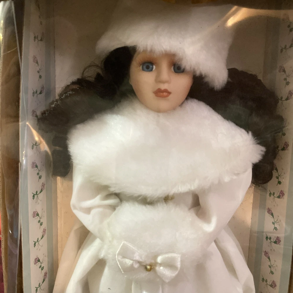 Hearts & Memories: White Winter Wonderland 16” Porcelain Doll. Condition is Used. Shipped with UPS Ground Saver.