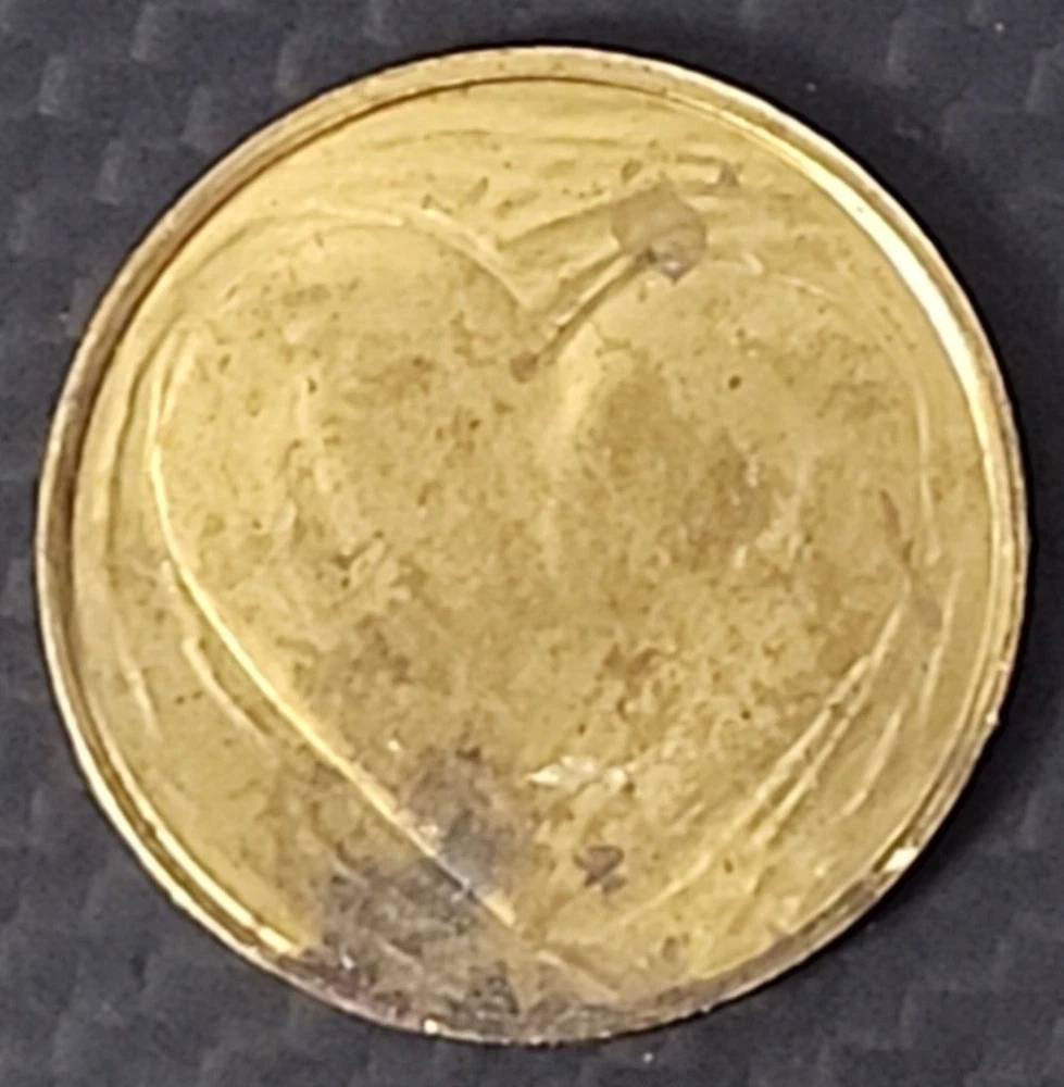 This unique token coin is a must-have for any collector. Crafted from brass, it features a stunning heat love design that is sure to impress. The coin is 1" in size and has been circulated, adding to its charm and character. Its composition and country of manufacture are unknown, adding to the mystery and intrigue of this piece. Perfect for adding to your collection or for use in heat love rituals, this token coin is a rare and valuable find.