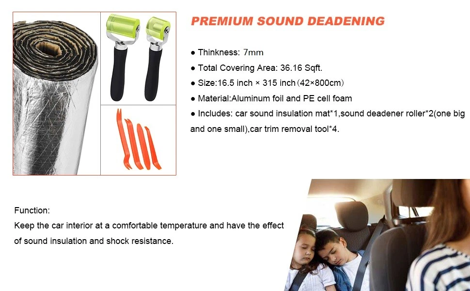 Specifications: Features: Car heat / sound insulation Top layer: Aluminum foil Middle layer: High density foam cotton Under layer: Strong back glue Size: 16.5"×315" Thickness: 1/4” (236mil) Temperature Rating: 200 Degrees nominal Condition: 100% brand new Reinforced / Crush Resistant: Yes Mildew & Mold Resistant: Yes Water resistant: Yes Non-toxic: Yes PACKAGE INCLUEDE: 1x Heat Sound Deadener Insulation Mat 2x Rollers 4x Installation Tools Feature: 1) High quality installation tools help you install better. Modigt2022 Best choice of motor parts Heat Shield Sound Deadener Car Insulation Thermal Noise Self-adhesive 315"x16" Specifications: Features: C ar heat / sound insulation Top layer: Aluminum foil Middle layer: High density foam cotton Under layer: Strong back glue Size: 16.5"×315" Thickness: 1/4” (236mil) Temperature Rating: 200 Degrees nominal Condition: 100% brand new Reinforced / Crush Resistant: Yes Mildew & Mold Resistant: Yes Water resistant: Yes Non-toxic: Yes PACKAGE INCLUEDE: 1x Heat Sound Deadener Insulation Mat 2x Rollers 4x Installation Tools Feature: 1) High quality installation tools help you install better. 2) Can be used for the entire interior of any vehicle including: floor panel, door, carpet under/seat, headliner/roof, trunk, trunk lid, firewall (internal side). 3) By reducing or suppressing the sound vibration of the metal plate, you can eliminate road noise. 4) Easy to install, suitable for various car models, simply trim pieces to fit, peel and place and hand roll to ensure good adhesion. No messy spray paint or adhesive is required to install this product. 5) This car insulation is used in many applications, such as muscle cars, hot rods, light cruisers, imports, tuners, street rods, mouse rods, classic cars, racing cars, stock cars, old antique cars, pickups, trucks, low rider and many more. We even have customers using it on their SUVs, vans, RVs, luxury cars, campers, yachts, RVs and school buses. Installation: 1. Remove the door panels. 2. Install the screws back in original place, it will easy be found when you mount, avoiding holes be covered. 3. Please clean the surface you want to paste. 4. Make insulation materials and sheet metal firm fit, and play best adhesive, damping performance. 5. It is best not to repeatedly tear and paste during the successful installation process, otherwise the paste effect will be destroyed. Important Note: Due to the light and screen setting difference, the item's color may be slightly different from the pictures. Please allow slight dimension difference due to different manual measurement. Item Specifics Style Noise& Heat Insulation Type Carpet Mat, Heat Sound Deadener Insulation Mat Material Aluminum &Foam Placement on Vehicle Left, Right, Front, Rear Color Silver Features Noise Reduction, Easy to Cut, Self-Adhesive Universal Fitment Yes Manufacturer Warranty 5 Years Using Placement 1 Hood,Celling ,Door,Roof Using Placement 2 Cockpit Floor, Tailgate, Firewall U Type Wall Using Placement 3 Front Fender,Rear Fender,Front and Back Wheels Using Placement 4 Cargo,Trunk,Bonnet,Dashboard,Under Seat Using Placement 5 Trunk Lid,Trunk Room,Engines Using Placement 6 Underneath bonnets,Underfelt,Underlay Using Placement 7 Boot,Panel,Chasis Application 1 Classic Car,Race Car,Stock Car,Old Vintage Car,Pickup,SUV,Caravan Application 2 Van,Truck,limousine,Camper,Boat,Motor Homes,School Bus,Low Rider Application 3 Muscle car,hot rods,corvettes,imports,tuners,street rods,rat rods Function 1 Protects Paint from Blistering Function 2 Reduce the road/Engine/Wind noise Function 3 Dustproof,Waterproof,Anti-moisture Number of Pieces 1 Easy Installation all curves and corners without the need for heat Brand MODIGT Product status 100% Brand New Thickness 236mil = 1/4” Size 315" x 16.5"= 36sq.ft (3.36sqm) Come With 2x Rollers , 4x Installation Tools Payment 1. It will be much appreciated that you finish your payment asap or it will make UPI (unpaid item case) on your account leading to be suspended or restricted by eBay when those UPI cases carry over to certain amount. 2. Any problems please contact us for more details. Shipping 1. All items will be shipped to buyer's ebay address. 2. All items will be shipped within 24-48 working hours upon receipt of payment, and multiple items will be combined shipping. 3. In most cases, delivery takes around 3-5 business days, it's highly depended on the efficiency of the shpping carrier. If your item doesn't arrive on time, please contact us immediately for further assistance. Please note there is no local pickup service available. Returns If you are not 100% satisfied with your purchase, you can return the product and get a full refund or exchange the product for another one. Please Note: Please write us a message before your return, otherwise we will not accept the package. Any product you return must be in the same condition you received it and in the original packaging. Contact Us 1. We care about our valued buyers, if you have any questions, our Customer Service staff will be very glad to help you. We try our best to reply your ebay message as soon as possible, please kindly allow 24 hours for us to response. 2. Our goal is to make sure you are a happy buyer and pleasant shopping with us. Please contact us before leaving any 1 or 2 star ratings, negative feedback or open any dispute. We understand the concerns and frustrations you might have, and will do our endeavor to resolve the issues. Modigt2022 Best choice of motor parts Heat Shield Sound Deadener Car Insulation Thermal Noise Self-adhesive 315"x16" Specifications: Features: C ar heat / sound insulation Top layer: Aluminum foil Middle layer: High density foam cotton Under layer: Strong back glue Size: 16.5"×315" Thickness: 1/4” (236mil) Temperature Rating: 200 Degrees nominal Condition: 100% brand new Reinforced / Crush Resistant: Yes Mildew & Mold Resistant: Yes Water resistant: Yes Non-toxic: Yes PACKAGE INCLUEDE: 1x Heat Sound Deadene