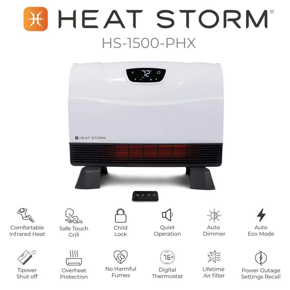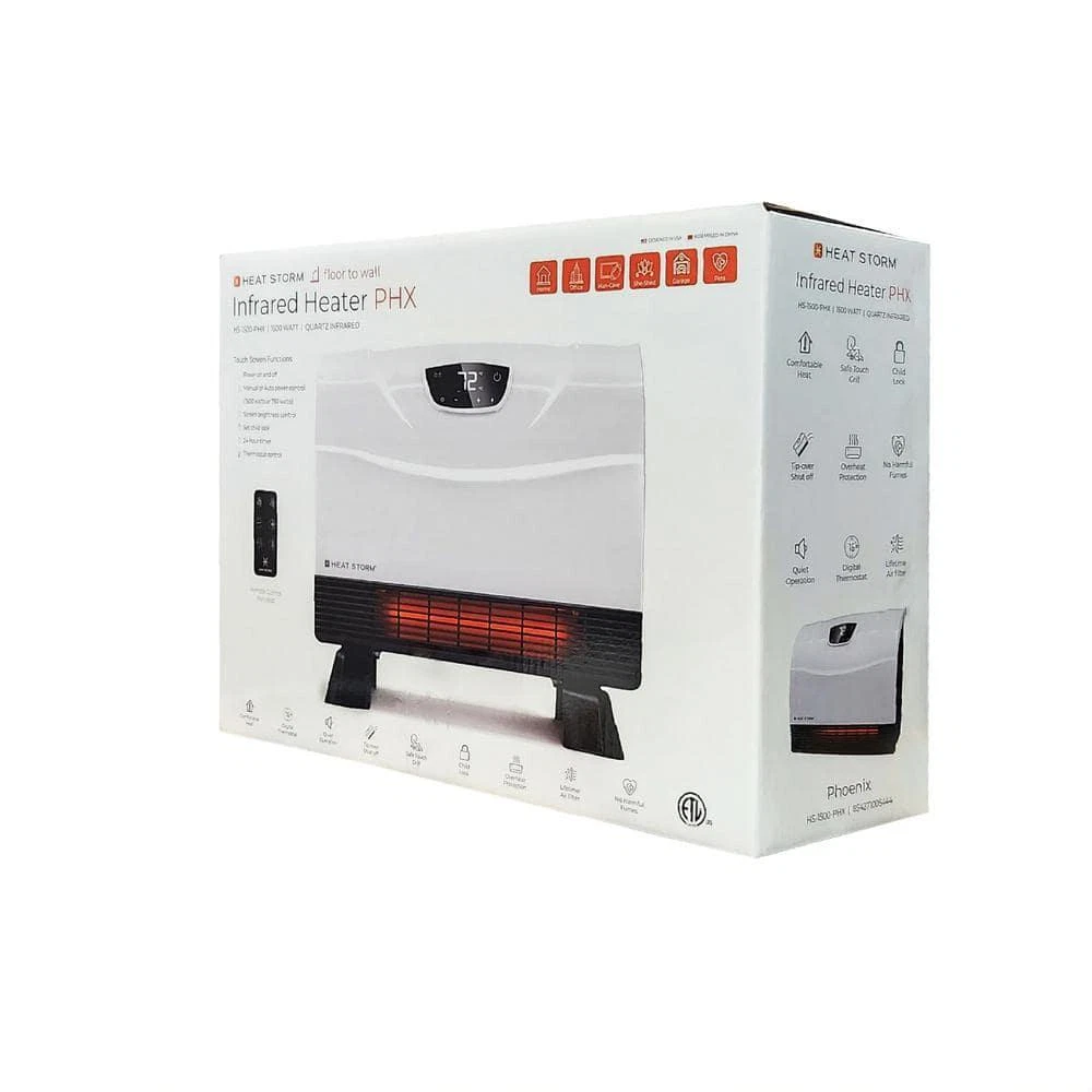 Phoenix Floor To Wall Unit 1,500-Watt Infrared Quartz Portable Heater With Built-In Thermostat And Over Heat Sensor Store New Arrivals Add to Saved Sellers View Feedback Contact Phoenix Floor To Wall Unit 1,500-Watt Infrared Quartz Portable Heater With Built-In Thermostat And Over Heat Sensor European Design Child Lock button Optional wall mount kit The Heat Storm Phoenix 1500-Watt, infrared floor to wall heater is a great solution for any bedroom or small room where there is not much floor space. At 1500-Watts, this heater will easily heat up your room without tripping your circuit breaker. Quickly mount onto your wall or attach the included feet to place it on the floor. Simply plug into any standard household outlet. This heater is safe to touch, even on the grill, making it an excellent choice for anyone. This unit has three power modes: full 1,500-Watt. half 750 -Watt, and auto mode automatically selects between half and full power. Each heater comes with our Patented Heat Exchanger HMS Technology that allows maximum heat efficiency from the infrared quartz bulbs without any heat loss from the unit. Amperage (A): 12.5 A Area Heated (sq. ft.): 750 sq ft Color: White Color Family: Blue Control Type: Digital Fan Mode: No Fan Mode Features: Cool-to-the-Touch Heat rating (BTU/hour): 5200 Btu/h Heater Type: Quartz Heating Method: Convection/Radiant Indoor/Outdoor: Indoor Location Use: Garage,Jobsite,Patio Material: Acrylonitrile Butadiene Styrene (ABS) Number of Elements: 1 Number of Heat Settings: 2 Pack Size: 1 Portable Heater Features: Digital Display,Handle,Quiet Operation,Remote Control Power/Fuel Type: Electric Product Weight (lb.): 10 lb Room Size: Large Thermostat Settings: Adjustable Voltage (V): 120 V Wattage (W): 1500 W Certifications and Listings: ETL Listed Cord Length (in.): 36 in Product Depth (in.): 5 in Product Height (in.): 13 in Product Width (in.): 3.6 in ABOUT US Customer service is our top priority! Please be sure to read the description thoroughly to make sure that this is the item you want before making a purchasing decision. If you have any questions about this item, please contact us via eBay messages before placing your order. We make every effort possible to accurately describe and depict the items. Please be aware that slight variations in color may be due to differences in lighting and computer monitor resolutions. All items are in stock at the time of listing; however, in the unlikely and unforeseen event that we are unable to fulfill your order through any of our networked warehouses, we will notify you as quickly as possible and offer you a 100% refund on your purchase. Thank you for shopping with us. We appreciate your business! SHIPPING We provide fast, free shipping. Most items are shipped within 3-5 business days of receiving cleared payment. We ship to the lower 48 contiguous United States only. We do not ship to P.O. Boxes or APOs. For select items, we ship internationally through eBays Global Shipping Program. We do ship most of our smaller items internationally using eBays Global Shipping Program. If ordering electrical items outside of the U.S., please note that they will come equipped with a standard U.S. voltage plugs. You will need a suitable adapter to use the item in your country. Certain restrictions apply. Standard or Economy Shipping is ALWAYS FREE! You will be notified via eBay messages as soon as your items ship. Special Notice for Freight Items: If an item ships via Freight (Truck) Delivery, a valid phone number will be required so that we can contact you to schedule delivery. The item may be delivered with curbside delivery. An adult signature will be required. Please be sure to have available help on hand to assist you with moving the item to the desired location in or outside of your home. Freight items must be inspected upon delivery. In the unlikely event that damage is observed, you MUST refuse delivery and note the damage on the shipping receipt and send it back via the Freight carrier. Returns will not be accepted on Freight items after they have been delivered, inspected, and the driver has left the premises. RETURNS When returning an item, it must be in all of the original packaging and include all of the original accessories or items that came with it. The item and package should be in original and perfect condition. You will be required to cover shipping on the return of non-defective items. All returns MUST be done within 30 days of date of purchase. Please note that we cannot give refunds or replacements after the 30 day limit has expired. When sending in a return, please note that it can take up to 7 business days for the return to be processed. We do our best to process as quickly as possible. We are extremely fair, and in the rare event of something out of the ordinary happening with our products or shipping, we will gladly work with you to find a fair resolution. PAYMENT We accept all of the standard payment options offered at eBay checkout. To provide a safe experience, eBay only allow payment methods that offer strong protection for buyers and sellers. Your order will be processed pending receipt of cleared payment. Sales tax may be charged depending on your location. DISCLAIMER We are sorry, but we do not honor product exchange requests. If you need to exchange an item received, you will need to go through the normal returns process identified in our returns section and then order the correct item, if it is still available. Orders are processed immediately and dispatched to fulfillment as soon as they are received. For this reason, we are typically unable to honor cancellation requests. If you need to cancel the transaction, please contact us as soon as possible and we will attempt to cancel the order. If the order has gone too far through the fulfillment process, we will be unable to cancel. In that event, you would need to wait until you receive the item and go through the normal returns process as mentioned in th